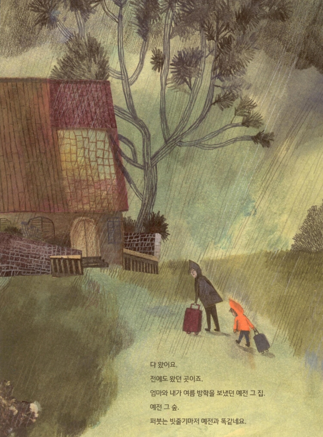 나도 자랐다. 몇 년만 더 지나면 엄마가 산만큼의 나이를 먹게 된다. 어느 날에는 내가 보는 거울 안에서 엄마의 얼굴과 만날 수 있겠지. 빗자루를 든 건 아니지만 가끔은 송곳 같은 말로 아이 가슴을 후비는 그런 엄마가 나는 되었지. 그렇게 세상의 모든 따분함이 모여든 날이 오면 우리 아이는 어디로 피신할까? 우리 아이에게도 자기만의 나무와 옥상이 있을까? 부디 그러길. 그러면 돌아온 아이에게 따뜻한 코코아 한 잔이라도 타주며 말없이 바라봐주는 엄마라도 나는 되어야겠지. 부디 그러길.