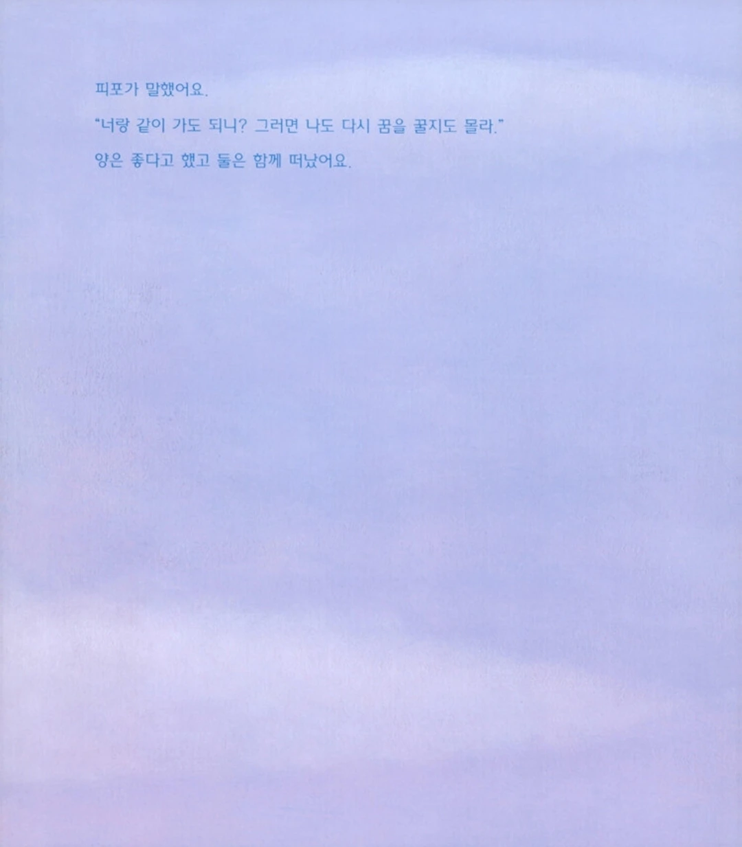 『피포의 여행』을 보면서 그 사람들이 떠올랐다. 지금의 나라도 있게 한 그 순간순간의 사람들. 불면과 불안의 구멍 난 날들을 그들이 조금씩 메꿔줬다. 행복해지고 싶어 발버둥 치던 내 노력 뒤에 지금 생각해 보니 보이지 않는 손길이 그때마다 내게로 왔다. 그 인연들은 함께 나란히 가다가도 어느새 서로 다른 길로 헤어질 때가 있다. 오늘처럼 다시 그들이 떠오르고 그리워질 때마다 난 피포가 친구에게 달려간 것처럼 애정을 담아 그들을 기억하려 한다.