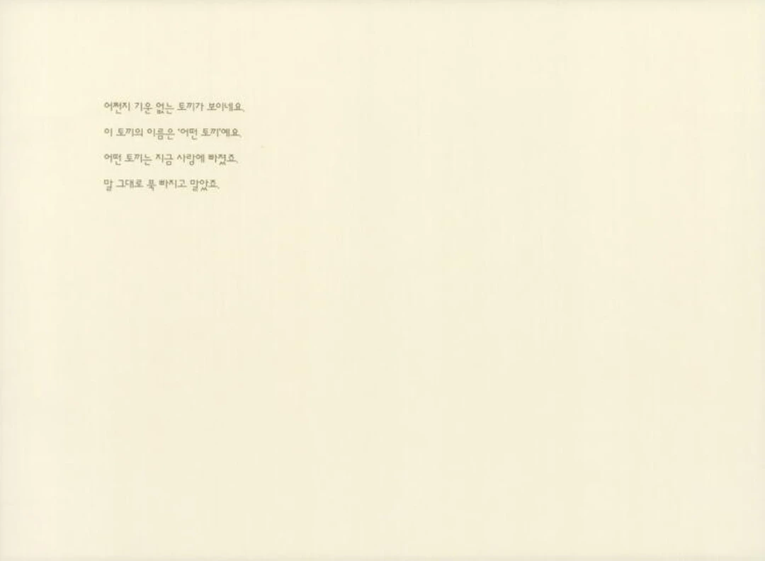 고백한 어떤 토끼는 그래도 나보다 용기 있는 아이. 더구나 아무나 할 수 없는 일을 아무렇지 않게 해내는 토끼가 아니던가. 숨기만 했던 나도 이젠 나대로의 삶을 살고 있으니 어떤 토끼는 더 잘 살아갈 것이다. 어느 날 너만의 토끼를 만나게 된다면 그때 또 우리 반갑게 인사하고 두 팔 벌려 안아보자. 안녕, 어떤 토끼야.