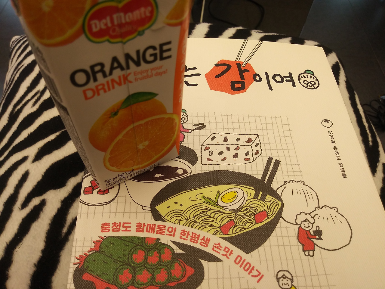 염색이 되길 기다리며, 책과 주스가 있어 그나마 덜 지루하다.