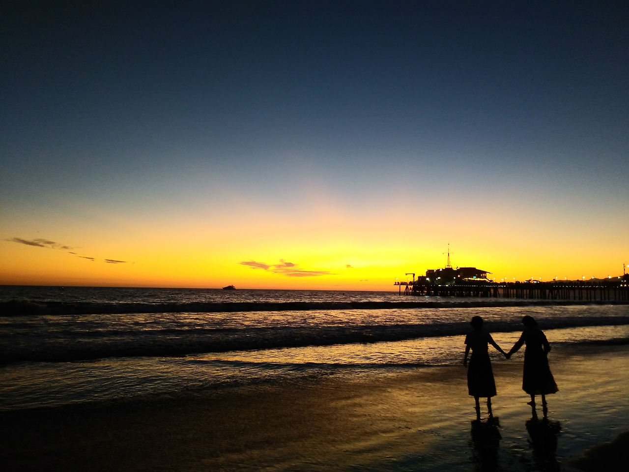 여행 책자에서 산타 모니카 해변은 석양을 보라고 했다. 여정따라 갔을 뿐인데 딱 그 시간이다. 석양의 바다가 이렇게 황홀히 예뻤던가. 예전에 봤던 모든 바다가 잊힐 정도로 최고다.