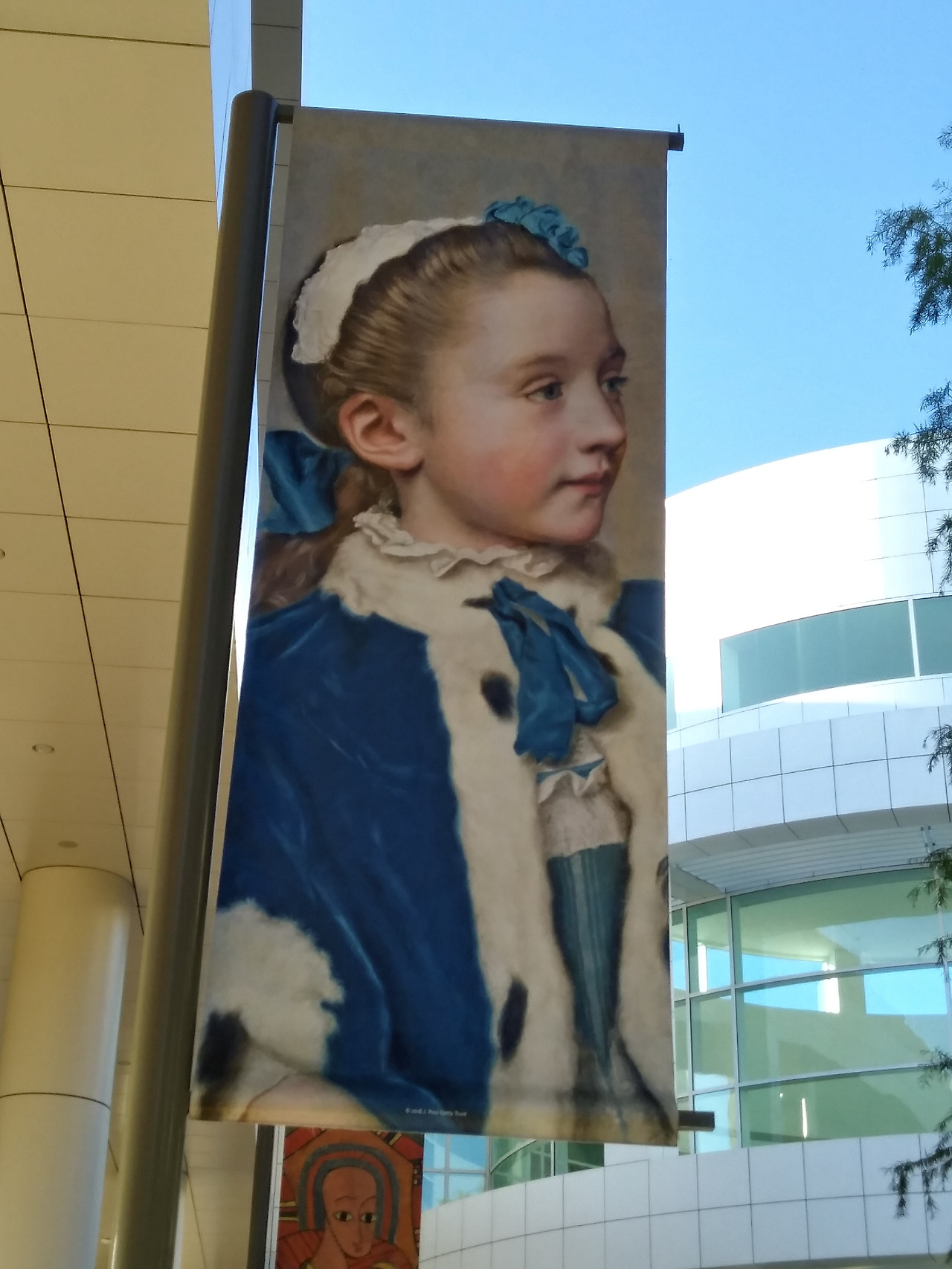 운동이라기에는 참 부족한 느린 걸음이지만 그래도 그림을 보며 걷는 미술관 투어는 행복한 도보이다. 걷다가 맘에 드는 그림을 만나면 잠시 걸음을 멈추고 한참을 들여다본다. 모네 그림을 만나 깜짝 놀라 흥분했고, 게티 센터 곳곳에 깃발로 나부낀 소녀 그림도 실제로도 너무 아름다웠다.