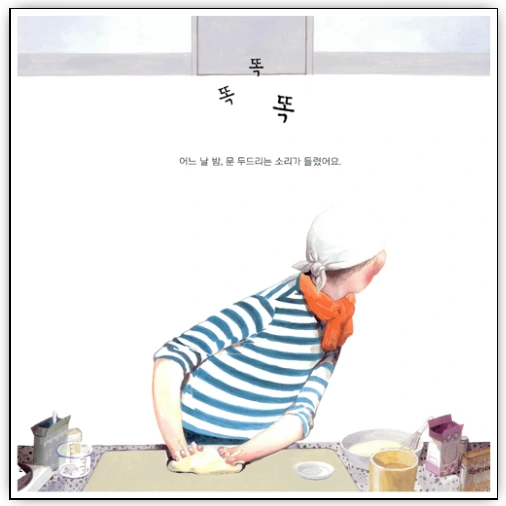 그러던 어느 날 누군가가 똑똑 문을 두드리는데 그는 흠칫 놀란다. 문으로 향한 그의 몸짓이 그림만으로도 불편하고 긴장감이 느껴진다. 그 밤에 누가 온 걸까.