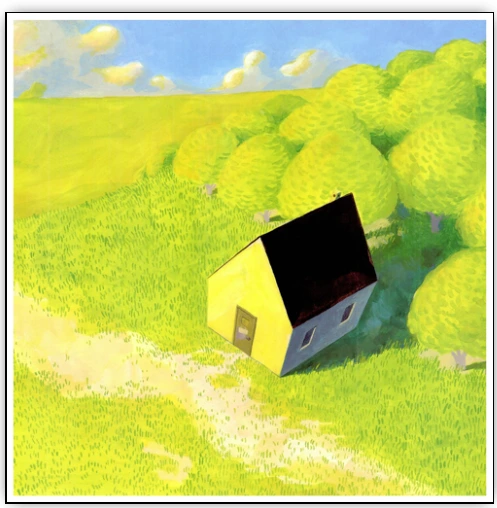 왜 아담한 마을을 벗어나 저 멀리 있는 언덕 위 외딴집으로 굳이 이사를 가는 걸까. 그림책 겉표지를 넘기면 바로 보이는 면지에서 그런 생각이 들었다. 그는 왜 떠나는 걸까.