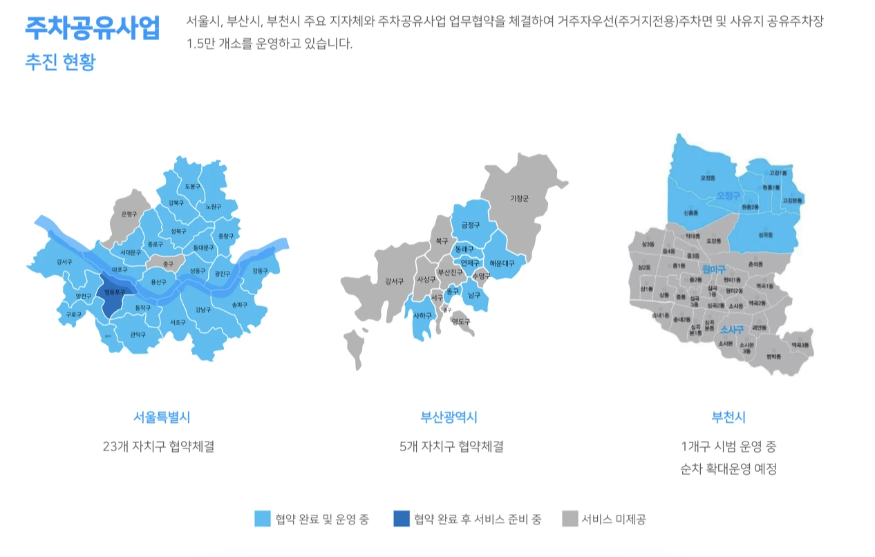 공유 및 운영하여 주차 문제 해결에 들어가는 사회적 비용을 줄여갑니다.