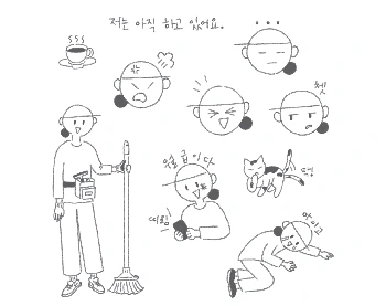 저는 늘 지금 메인 잡은 청소라고 생각해요. 현재로서 제 생계를 책임져주는 일은 청소니 까요. 다른 사람들이 물어볼 때도 ‘저 일러스트레이터예요'라고 하지 않고 ‘ 청소하면서 일러스트 그립니다'라고 하는데 그것도 그런 이유에서 고요.