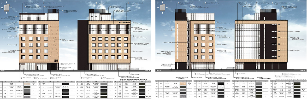 마감재 중심의 유행에 민감한 공간이 아닌, 헤이그라운드 만의 독특한 미적인 감성을 구현하고자 스타일 가이드라인을 정립하게 되었다. 이것은 건축외관/조경/인테리어/가구&조명 등의 분야별 전문가와 소통하기 위한 것으로 이를 통해 정제되고 간결한 디자인을 완성할 수 있었다.