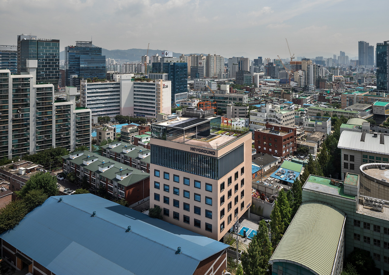 헤이그라운드는 지상 8층, 연면적 약 1,800평의 단독 건물로 체인지메이커들의 지속 가능한 커뮤니티 및 성장을 지원하고자 디자인되었다. 설계 및 시공 각 단계에 맞춰 사용자 참여 프로세스를 실행하였으며, 헤이그라운드만의 디자인 가이드라인을 정립하여 건축, 조경, 인테리어, 가구 등을 통합적으로 계획하였다. 또한 사회적 책임을 다하는 민주적인 디자인을 추구하여 구성원뿐만이 아니라 사회적 약자를 배려하고자 하였다.