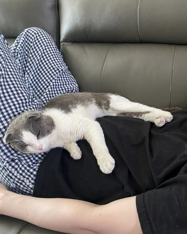 소파에 잠깐 누우면 아서가 터벅터벅 걸어와 내 위에 눕는다. 그냥 몸을 기대고만 있을 때도 있다. 둘 다 좋지만 두 다리와 몸이 내 몸에 완전히 올라와 있는 상태를 좋아한다. 마치 내가 섬이 된듯한 기분으로 아서의 온전한 몸무게를 감당한다. 행복하다. 아서가 불편하지 않도록 호흡을 부드럽게 하다 보면 나도 몰래 잠이 든다. 이만한 휴식이 없다. 같이 한숨 푹 자다가 깬다. 어쩜 이런 작고 귀여운 생물체가 내 위에서 꼬물거리고 졸고 숨도 내쉬는지 신기하다.