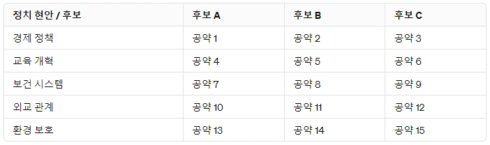 1) 후보자들의 선거운동 기간 동안 그들의 정보를 최대한 수집하여 중요한 정치 현안별로 후보 간 견해 차이를 정리한 일종의 대차대조표를 만들고,