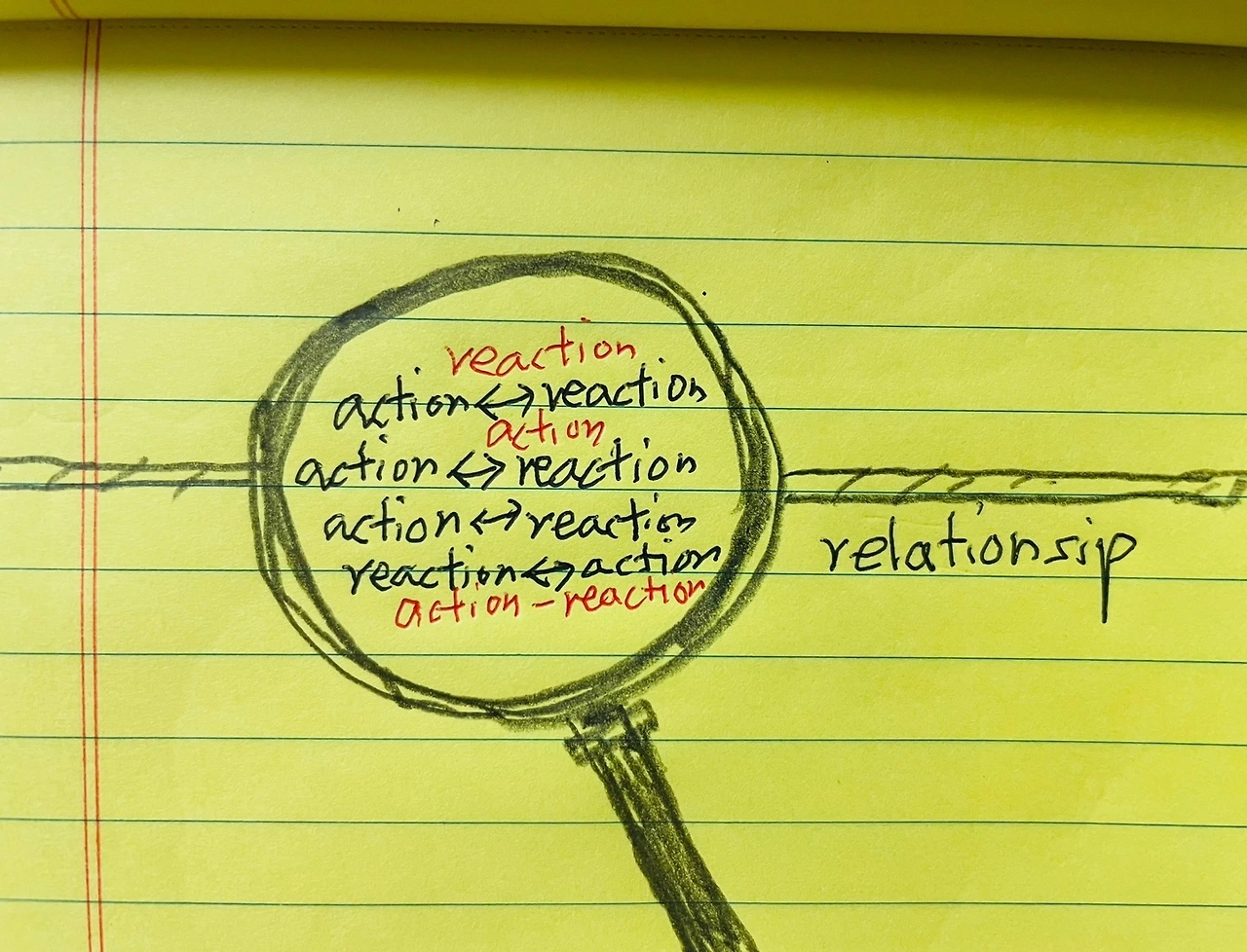 관계를 크게 확대해서 보면 액션(action)과 리액션(reaction)의 고리가 보인다. 이를 상호작용(interaction)이라고 한다. 이것이 관계의 기본 구조다. 이 블록이 쌓여 관계가 된다. 우호적인 상호작용이 많으면 관계의 끈은 파란색 즉 평화가 된다. 반대로 적대적 상호작용이 지속되면 러시아와 우크라이나처럼 빨간색 관계인 불화 또는 갈등이 된다. 충돌이 일어날 수도 있다.