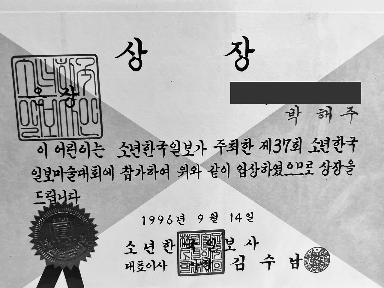 불행하게도 좋아하는 것과 잘하는 것이 늘 같지 않듯이 상장들을 들여다보면 나 역시 그랬던 것 같다. 미술이, 그림 그리는 것이 나에게 그러했다. 엄마를 따라 그림을 그리는 건 나에게 일상이었는데, 제대로 ‘그림을 그린다’의 첫 행위는 비슷한 또래의 아이들과 그룹 과외를 받았던 것이었다. 어릴 적 선생님들의 한 마디는 아이와 부모에게 얼마나 큰 영향을 미치는지, 당시 과외 선생님의 ‘해주는 정말 재능이 뛰어나요’라는 한 마디에 나는 고등학교 때까지 나에게 그런 재능이 실제 존재하는 줄 착각하고 살았다. 물론 그 재능 덕분에 종종 그림 대회에서 상을 탔고 가장 큰 성과는 소년한국일보사에서 주최한 ‘소년한국일보미술대회’에서 은상을 받은 것이었다. 천재가 아니었음은 분명했고, 재능을 최고의 역량을 키워낼 정도의 사랑은 아니었던 것이다.