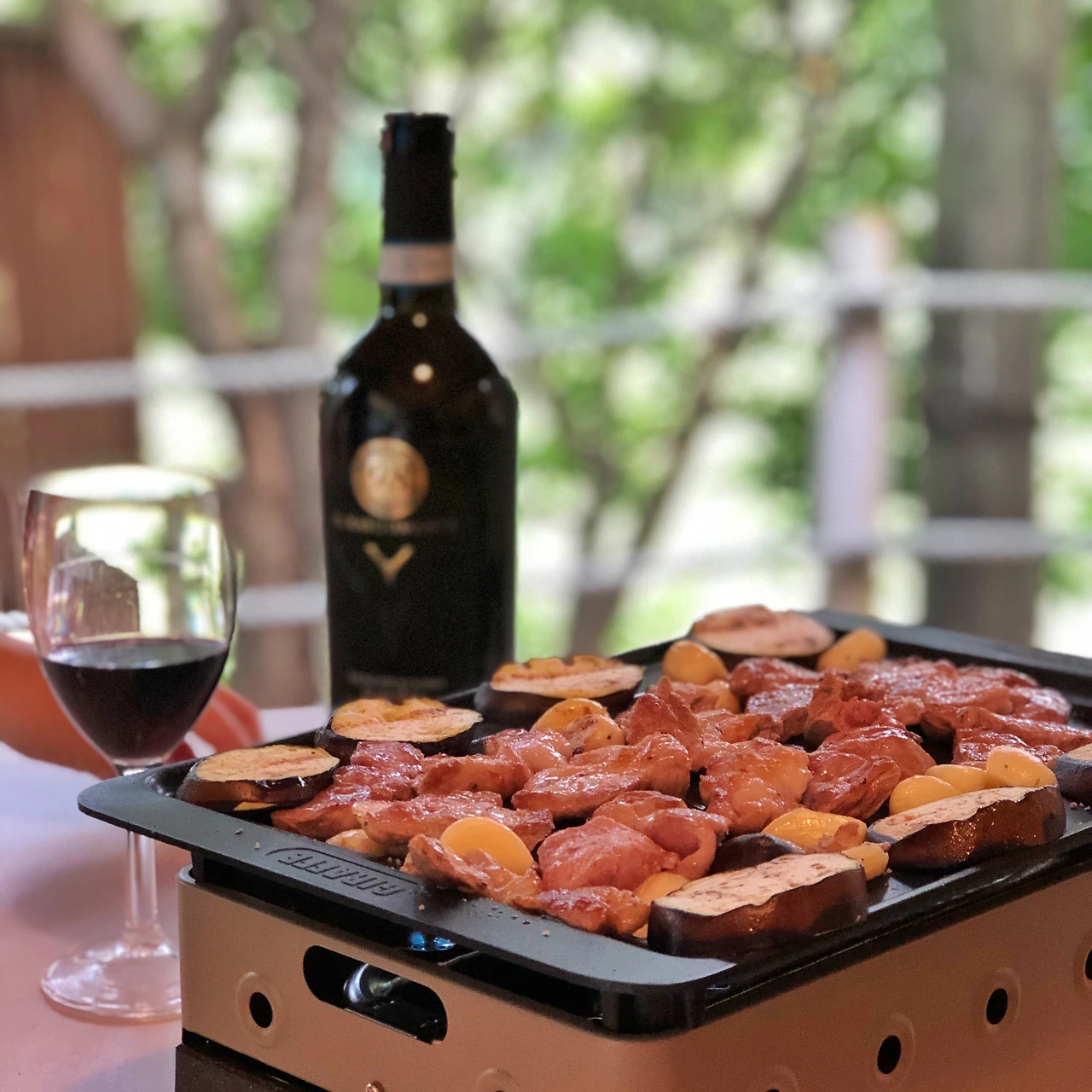 저녁 먹을 때가 되어 N이 꼼꼼하게 챙겨준 캠핑 도구들을 꺼내자 그제야 소풍이 아니라 캠핑 비슷한 게 되어 갔다. 가지도 굽고, 캠핑에는 목살이 최고라는 말에 사 온 목살도 굽고... 야외에서 고기를 굽고 와인을 마시는 건 싫을 수가 없었다. 저녁을 먹고 나서는 추천받은 ‘불멍’을 하기 위해 장작을 사 왔다. ‘불보며 멍 때리기’라니... 그게 무슨 말이지 했는데 정말 장작이 타는 걸 보니 멍하게 앉아 있게 됐다. 해먹에 누워 있는 거 좋아하고, 밖에서 고기랑 와인 마시는 거 좋아하고, 불멍 좋아하고... 아, 나 캠핑 좋아하네.