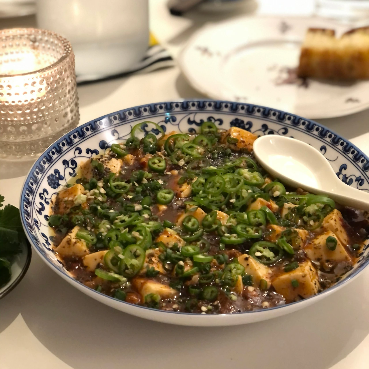 친구 K는 항암 치료로 힘든 시기를 보내고 있었고, 쉽게 입맛을 잃었다. 항암제 부작용으로 아주 적은 양의 식사만 하던 때였다. 그래도 맛있는 음식을 먹으면 좀 더 수월하게 식사를 할 수 있어서 K와 우리는 맛집을 찾아다니는 편이었다. 그해 겨울, 기대를 안고 간 플레이버타운에서 우리는 마파두부와 여러 요리를 주문했다. 마파두부는 위 사진에서 볼 수 있듯이 청양고추가 슬라이스 되어 함께 나온다. 나는 요즘 쓰는 말로 '맵찔이'인데 사천요리에 쓰이는 마라에는 강하다. 떡볶이는 한입 먹고도 매워서 쩔쩔 매지만, 마파두부나 훠궈는 얼마든지 먹을 수 있다. 나는 대충 청양고추를 피해서 마파두부를 흰쌀밥에 올려 한 입 먹었다. 바로 이거다…! 이 팬시한 식당에서 사천 마파두부를 찾을 줄이야. 그 외에도 다른 메뉴들도 다 특색이 있고, 맛있었지만… 마파두부를 찾은 기쁨이 가장 컸다.
