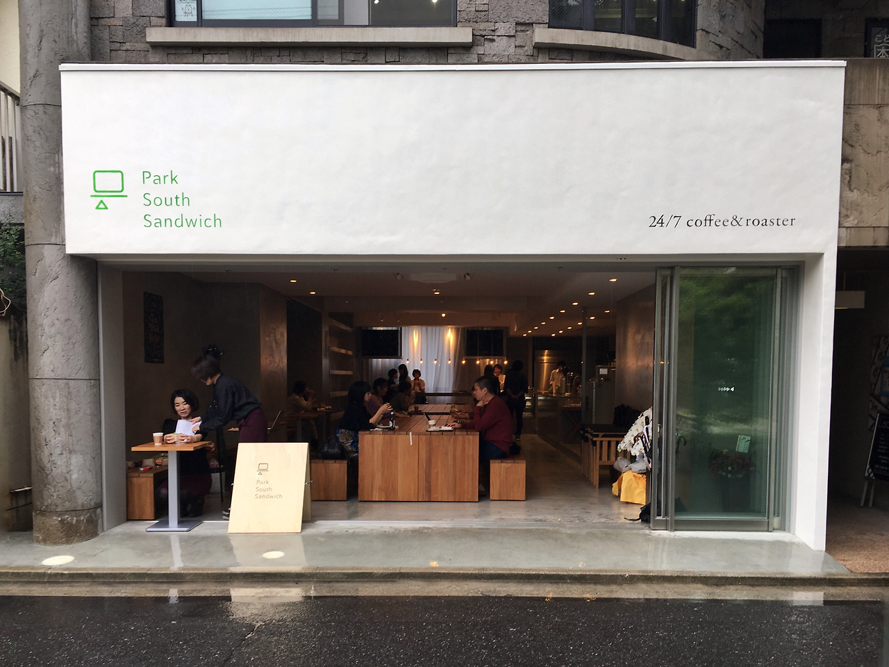 간판에 뭐라고 쓰여있는지도 모르는 외국에서 대강의 분위기로 아, 이곳은 종로 3가 같다, 이곳은 분당 같다 생각할 때가 있는데, 후쿠로마치 공원은 도산 공원 같고, 파크 사우스 샌드위치는 도산 공원 앞 매뉴팩트커피 같다. 편집샵, 브랜드샵이 많은 동네 한편에 큰 나무가 심어져 있는 공원이 있고, 그 공원을 막힘 없이 바라볼 수 있는 창이 있는 카페다. 이곳에 간 날은 비가 내려서 안에서 비 내리는 걸 보는 일이 즐거웠다.