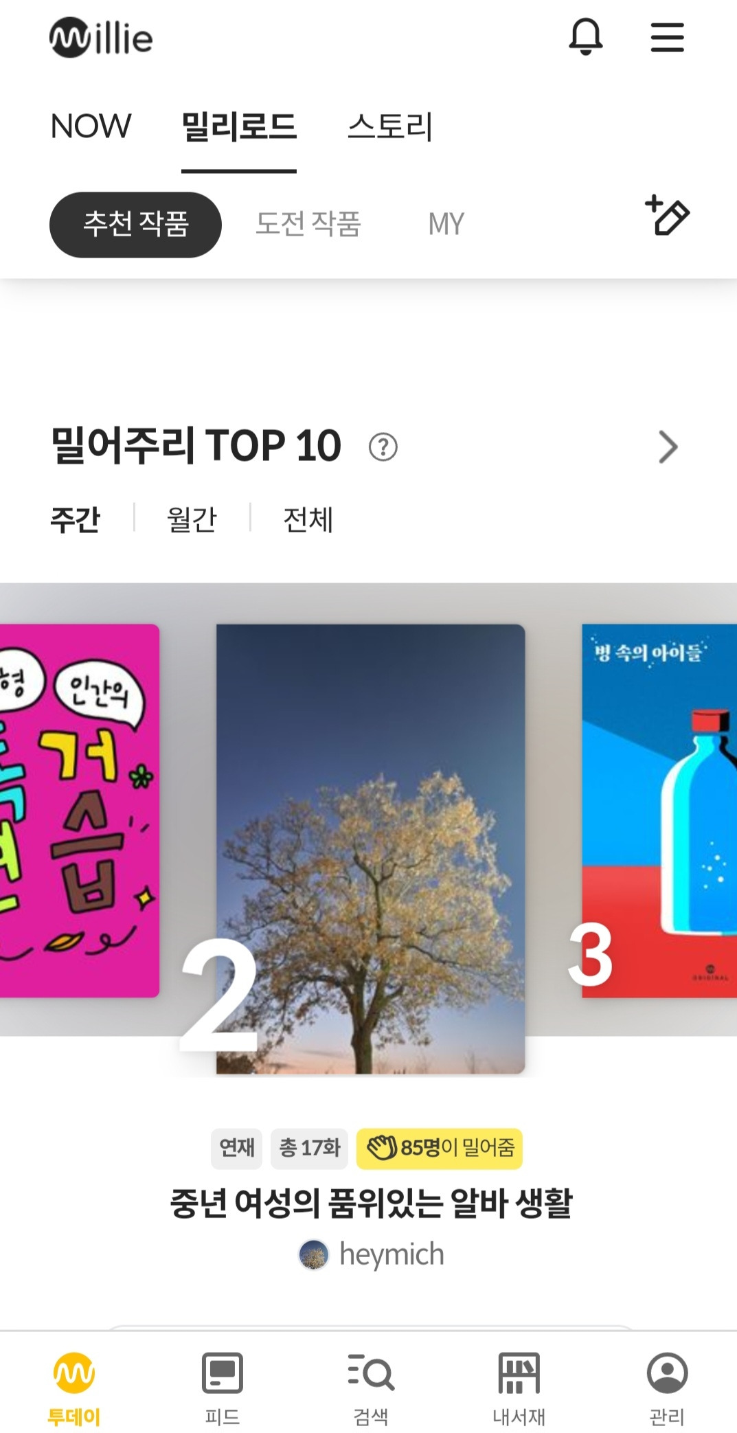 그러나 이런 팁들이 먹혔는가 하면 잘 모르겠습니다. 오히려 꾸준히 올린 게 더 주효했다고 생각합니다. 보통 밀리 로드 추천은 완전 초반 5회 차 안에서 받습니다. 저는 5화가 넘어갔지만 삭제하지 않은 게 탄력을 받은 이유가 된 것 같습니다.