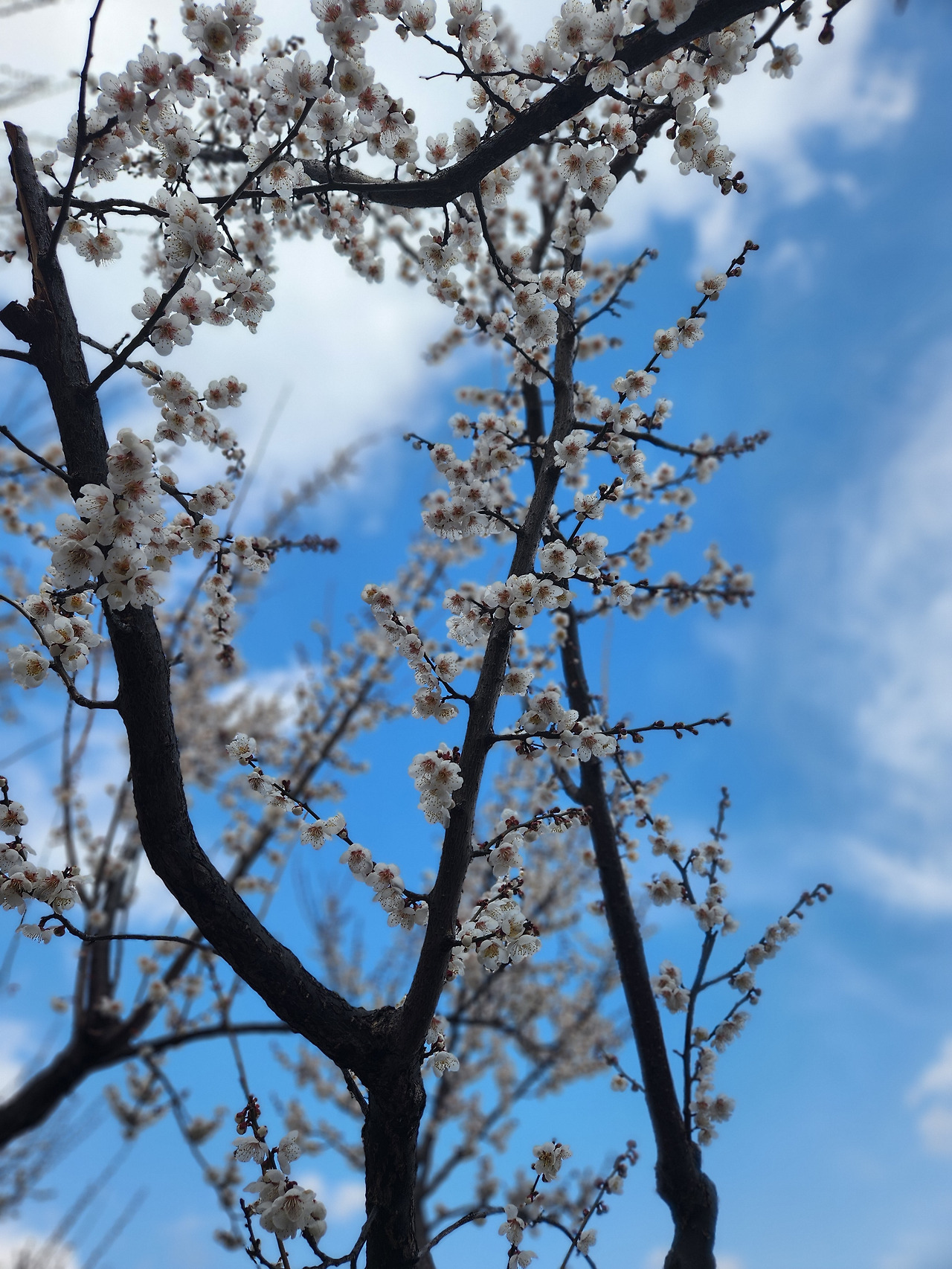 질척 질척한 땅을 넘어가지 끝부터 흔들리는 매화나무 (너)에게 가려는 의지가 마음을 두드립니다