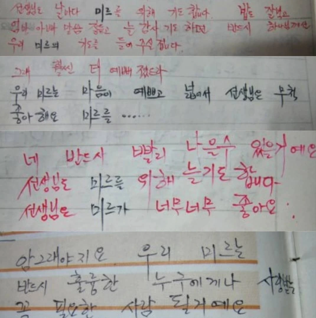 나에게도 영원히 간직될 순간들이 있다. 초등학교 2학년 때, 엄마보다 나이가 많은 담임 선생님이 계셨다. 그때 우리는 매일 일기를 써서 선생님께 검사를 받아야 했다. 선생님은 모든 아이들의 일기장에 2-3줄 정도 코멘트를 남겨주셨다. 선생님이 남겨주시는 '댓글'을 보기 위해 일기를 쓴 적도 있었다.