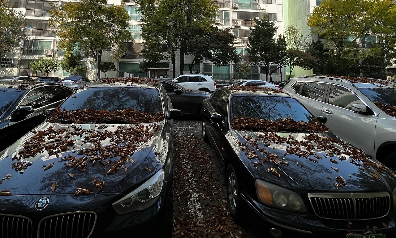 떨어지는 낙엽 아래에선 낙엽을 피할 수 있는 방법이 없다. 반짝 빛나는 외제차든 초록 번호판을 단 오래된 국산차든 낙엽은 평등하게 떨어진다.