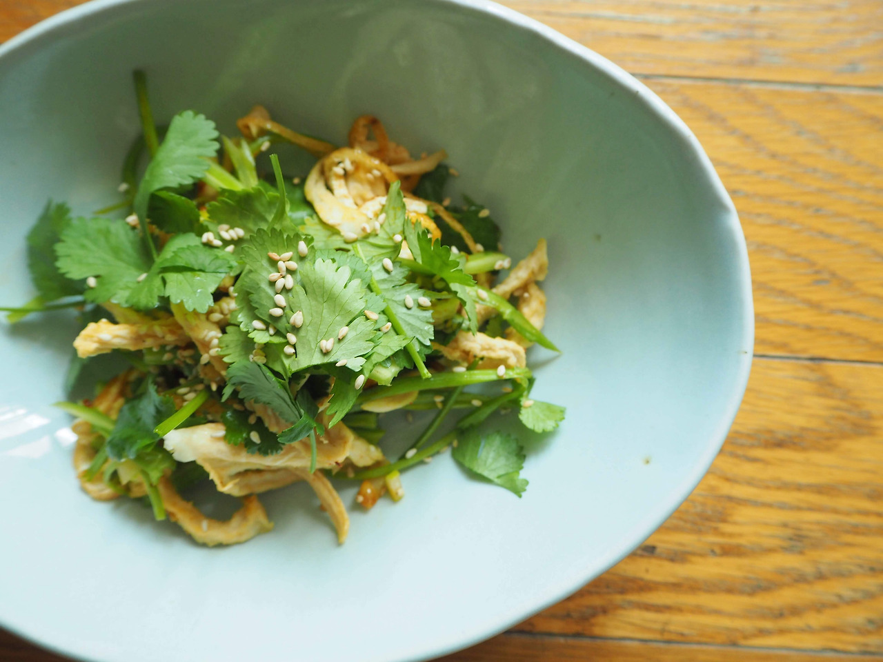 요리수업을 하며 사는 사람이기에 조금 앞서 재료를 사용하는 경향이 있다. 5월 클래스를 위해 그 준비를 3,4월에 하는 것 처럼. 5월은 봄에서 여름으로 넘어가는 시기. 이 시기에 맞는 재료, 조리법을 선택하며 메뉴구성이 진부해지지 않도록 고민 해보았다. 늦봄과 초여름 사이, 제철을 맞았을 햇완두와 표고버섯으로 밥을 짓고, 녹색채소들은 스프가 될 예정이다. 렌틸콩 등 수입상 콩 대신 아주까리콩을 사용해 허브향 샐러드를 만든다. 한편, 나의 요리중에는 드물게 매콤한 요리도 선보이려 한다. 무말랭이와 고수를 매콤하게 무쳐볼 예정.