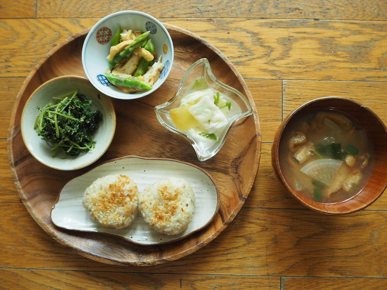 4월 산나물을 빼놓을 수는 없다. 취나물은 깨와 함께 무치고 아스파라거스는 유부와 함께 간장국물에 재워두었다. 취나물, 아스파라거스 모두 채소 중에서도 음의 성질을 갖는다. 지나온 겨울의 몸과 작별하고 여름 준비를 하기 위해서도 이러한 음의 성질은 필요하지만, 생각보다 강한 음의 성질을 갖기에 조화롭게 먹기 위해서는 그에 맞춘 조리, 재료를 더할 필요가 있다. 제철 취나물과 아스파라거스를 음양에 맞춰 지혜롭게 즐기기 위해, 들기름, 마늘을 들이붓던 옛습관과는 작별했다.