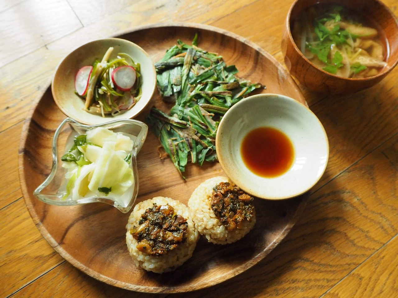 이 계절 잊고 지나가기 아쉬운 또 한 녀석. 머위를 들여왔다. 씁쓸한 맛에 호불호가 갈리는 머위를 더 맛있고 지혜롭게 즐겨보고 싶어 머위 쌈장을 만들어보았다. 도쿄에서 즐겨가는 음식점 보탄에서는 머위미소를 달콤하게 만들기 위해 미림을 사용했다는데, 우리나라의 된장에 미림은 썩 어울리는 조합이 못 된다. 하지만 달콤했던 머위미소에서 힌트를 얻어 우리나라식으로 재해석해 한번 만들어 보았을 뿐인데, 주먹밥을 빚어 머위 쌈장을 얹어 먹으니 밥도둑이 따로 없다. 야들야들한 부추도 통밀가루와 함께 반죽을 만들어 한입크기로 부쳐내니 막걸리를 부르는 한 상이다. 비도 오니 막걸리를 곁들였어도 괜찮았을텐데.
