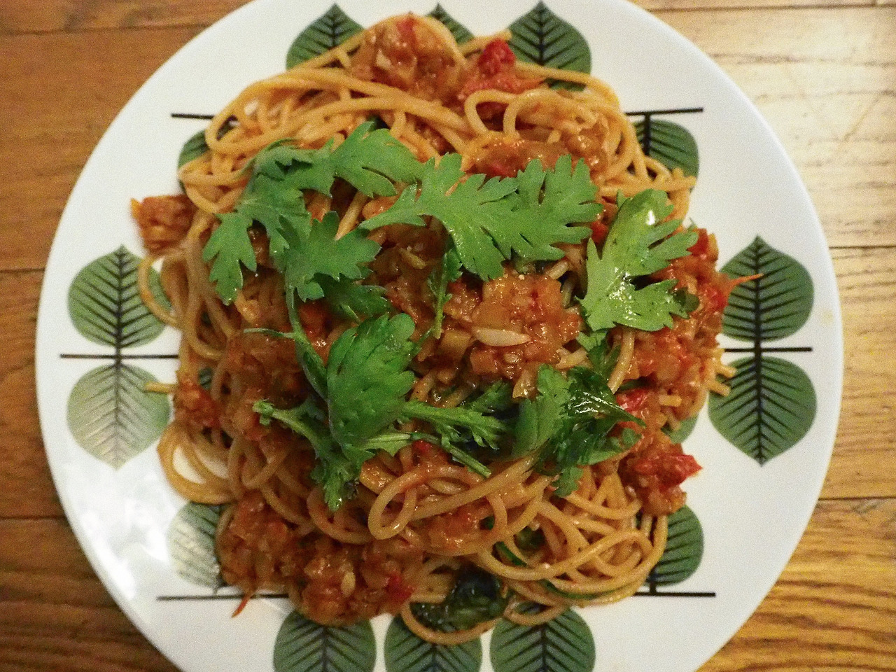 여러 일을 마치고 돌아와 차리는 늦은 저녁식사. 냉동실에 잠들어 있던 우엉라구와 쑥갓으로 오랜만에 파스타를 만들었다. 그 놈의 글루텐프리 열풍 때문에 역적 취급을 받고 있는 식재료, 밀로 만든 파스타이지만, 적어도 나에게는 땅에서 나고 자란 자연스러운 재료들로 만든, 편안하고 감사한 한끼 였다.