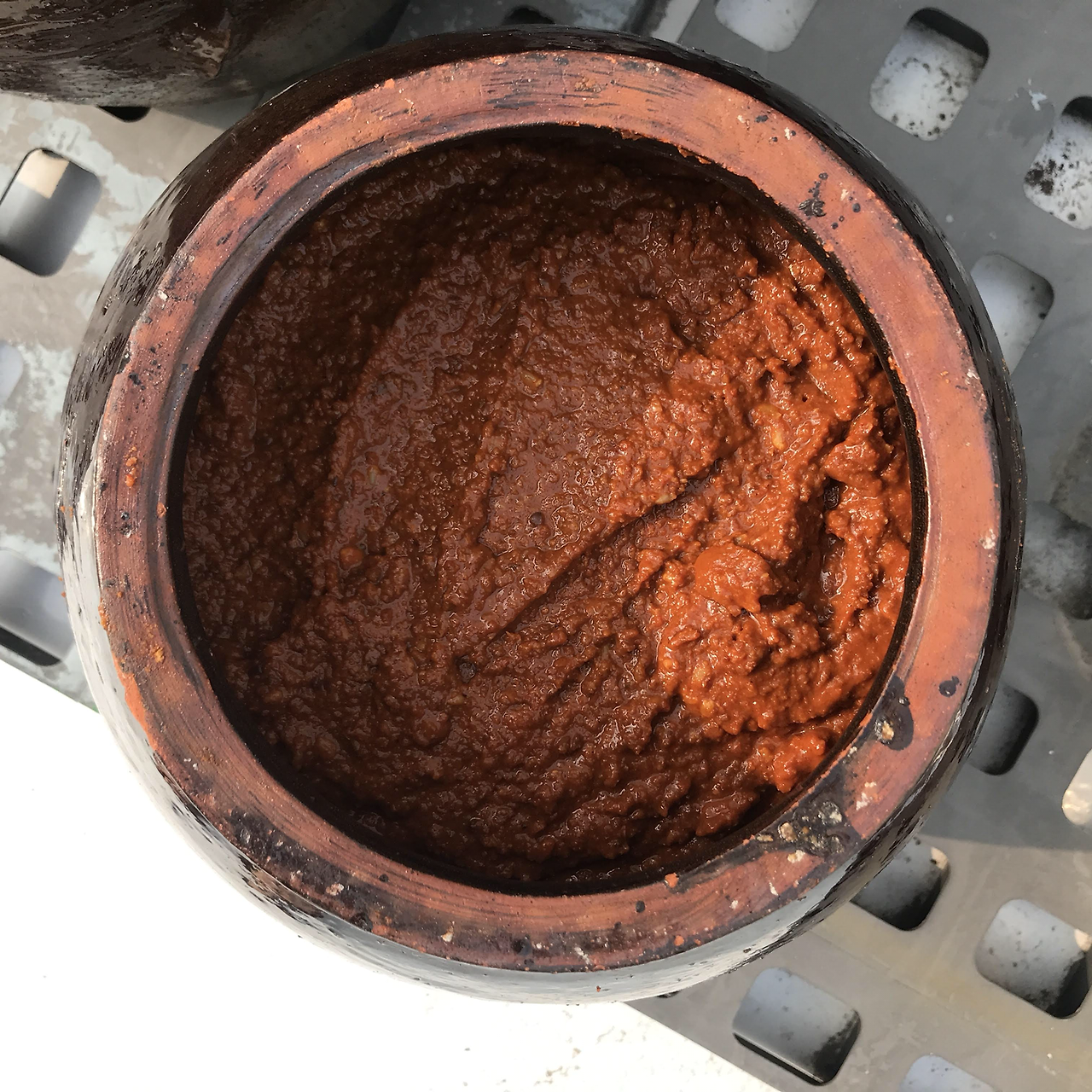 이런 마음에서 얼마전 우수를 맞아, 장을 담그고 왔지만, 다른 종류의 장을 직접 담그고 조금 더 자주 돌보아주기 위해 집에서 장을 한번 더 담아 보았다. 이번에 담근 것은 막장. 메주를 가루내어 사용하고 보리등의 곡물을 삭혀 넣는다. 숙성기간은 된장보다는 짧다. 된장에 비해 장을 가르는 수고는 덜수 있지만, 장을 담그는 날은 보리밥을 짓고 끊임없이 메주가루와 다른 재료들을 저으며 섞어주어야 하기에 팔 힘을 써야 하는 날이기도 하다. 메주에 소금과 물을 넣고 만드는 된장과는 만드는 방법이 완전히 다르기에 그 성질도 확연히 다르다. 할머니의 진두지휘 하에 직접 막장을 담아 보며 어떤 날 먹을지, 어떤 계절에 먹을지 활용방법을 다시 정리해 본다.