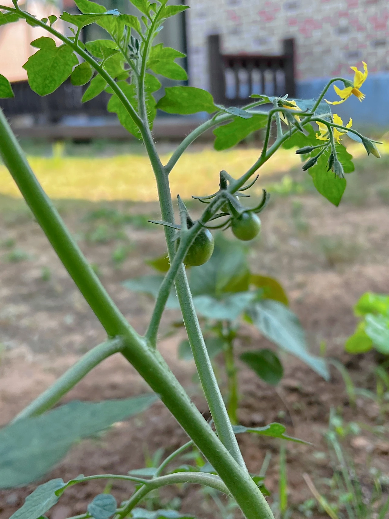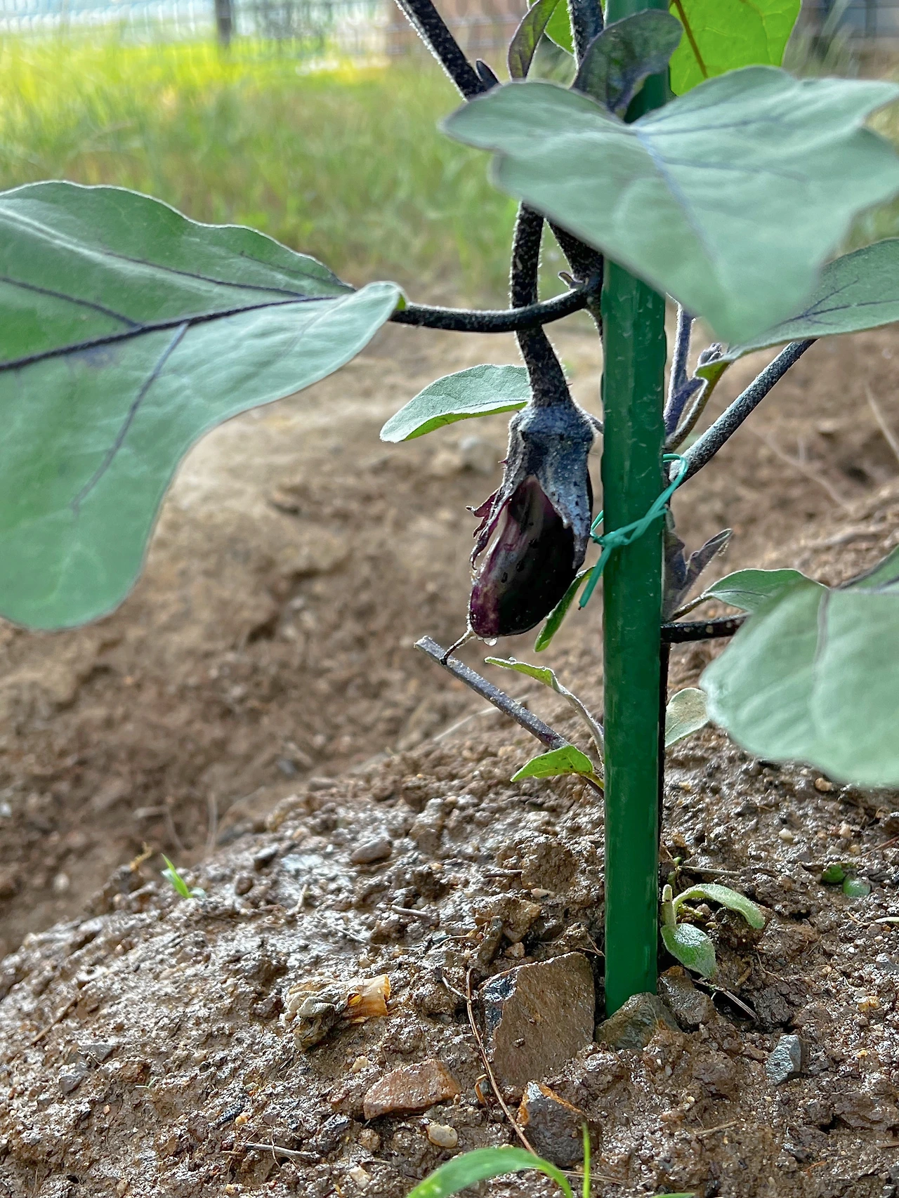 오늘 아침의 텃밭을 가보니 하루 사이에 가지와 토마토가 열려 있었다.