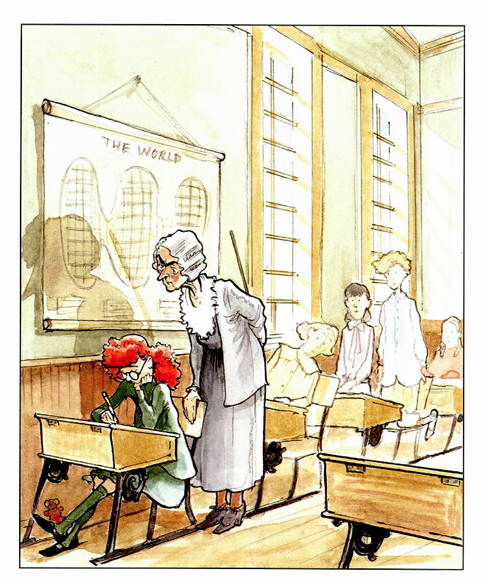 내가 좋아하는 <도서관>이란 그림책을 펼치면 얼굴은 보여주지 않고 책 읽기에 몰두하는 주인공의 모습이 눈에 들어온다. 펜과 잉크를 사용한 은은한 수채화로 표현된 순정만화를 떠올리게 되는데, 글 작가 사라 스튜어트의 남편인 데이비드 스몰의 작품이다. 글과 그림의 조화가 마치 오래 살아온 부부처럼 자연스럽게 융화되어 빛나고 있다. 자세히 살펴보면 속표지 옆에 '엘리자베스 브라운 전기'라고 적혀 있다. 주인공의 이름이다. 영국의 현존하는 여왕 엘리자베스가 떠오르는 주인공은 황새가 아기를 물어다 주듯이 하늘에서 뚝 떨어져 내리는 것으로 이 땅에 태어난다.