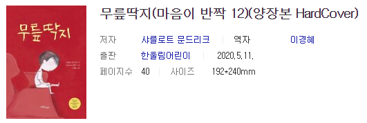 그렇게 기억들은 시간이 흘러서도 우리를 기쁘게도 슬프게도 만든다. 샤를로트 문드리크, 올리비에 탈레크의 <무릎 딱지> 역시 그런 '기억의 마음'에 대한 이야기다. 그런데 내가 어떤 아이든 늘 선물을 주시던 산타 할아버지의 빨간 색과 달리 안타깝게도 <무릎 딱지>의 빨간 색은 '아픈 상처'의 빨간 색이다. 엄마가 돌아가셨기 때문이다.