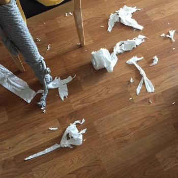 굳이 망가뜨린 걸 찾자면 휴지 정도? 하지만 아깽이가 있는데 휴지를 바닥에 둔 집사의 잘못이지.