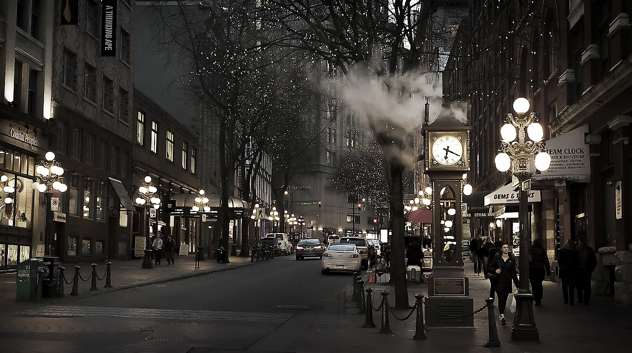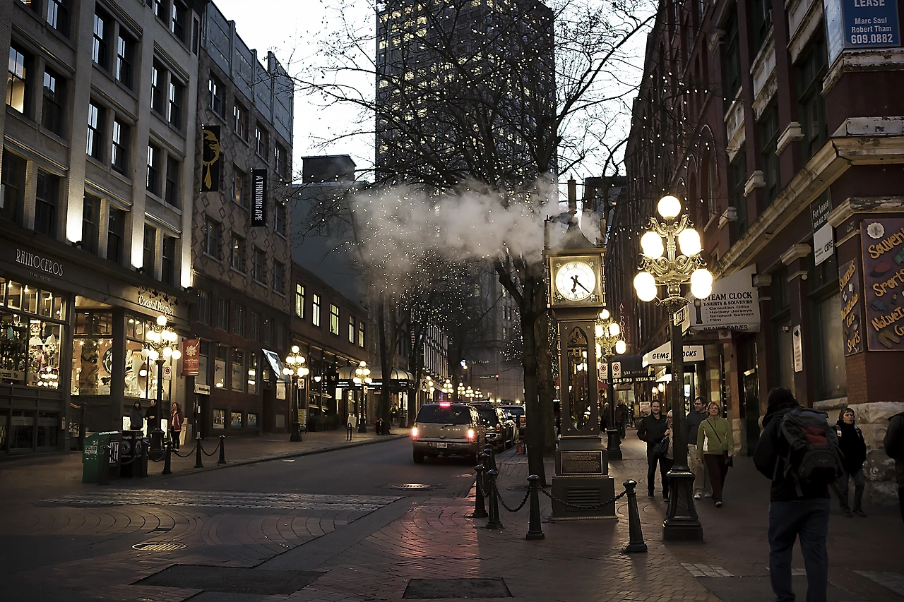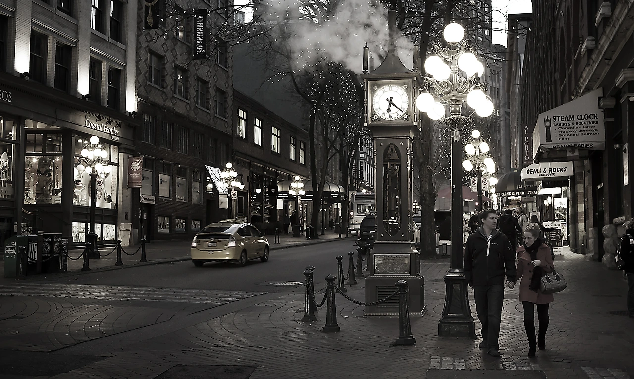 두둥!!!! 일제히 가로등불이 켜졌는데!! 와우 +.+ 정말 예쁘고 내가 찾던 장면들이었다!!.. 난 다시 돌아 길을 걸었고 증기시계가 있는 곳으로 다시 돌아왔다 근데 아까 초저녁 때 봤을 때랑은 느낌이 너무너무 나 틀리고 정말 예뻤다.. 뭔가 분위기가~ 움.. 말로 표현을 못하겠네..?? 암튼 너무 좋아 사진을 사정없이 찍어댔다.