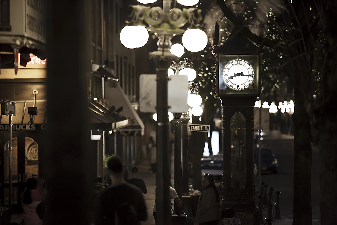 드디어 버스가 오고 우린 바로 다운타운으로 갔다. 저녁노을이 어느새 완전히 가라앉고 어둠이 올라와있었다. 당연히 개스타운에는 별빛이 내렸으리라 생각되니 더욱 기분이 좋았다. 그리고 우린 도착을 했고 같이 간 친구의 첫 마디는 와!!! 이런 곳이 있었네요??!! 크크 이런 반응에 왠지 모르고 나의 어깨가 으~쓱? 된다.! 왠지 모르게 좋은 곳을 소개하여줬다는 무언의 안심인 듯하다.