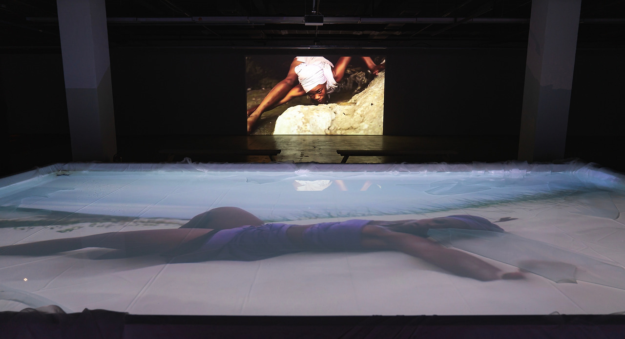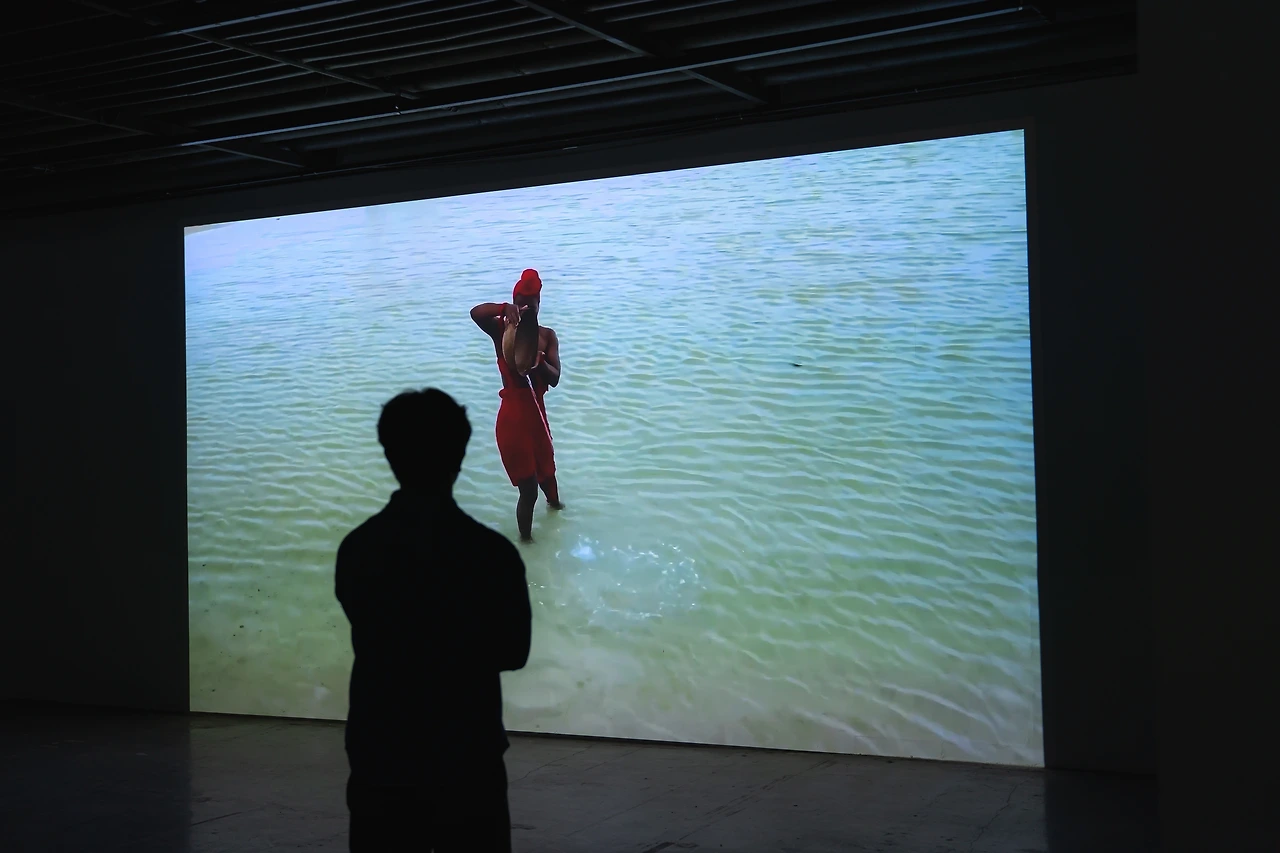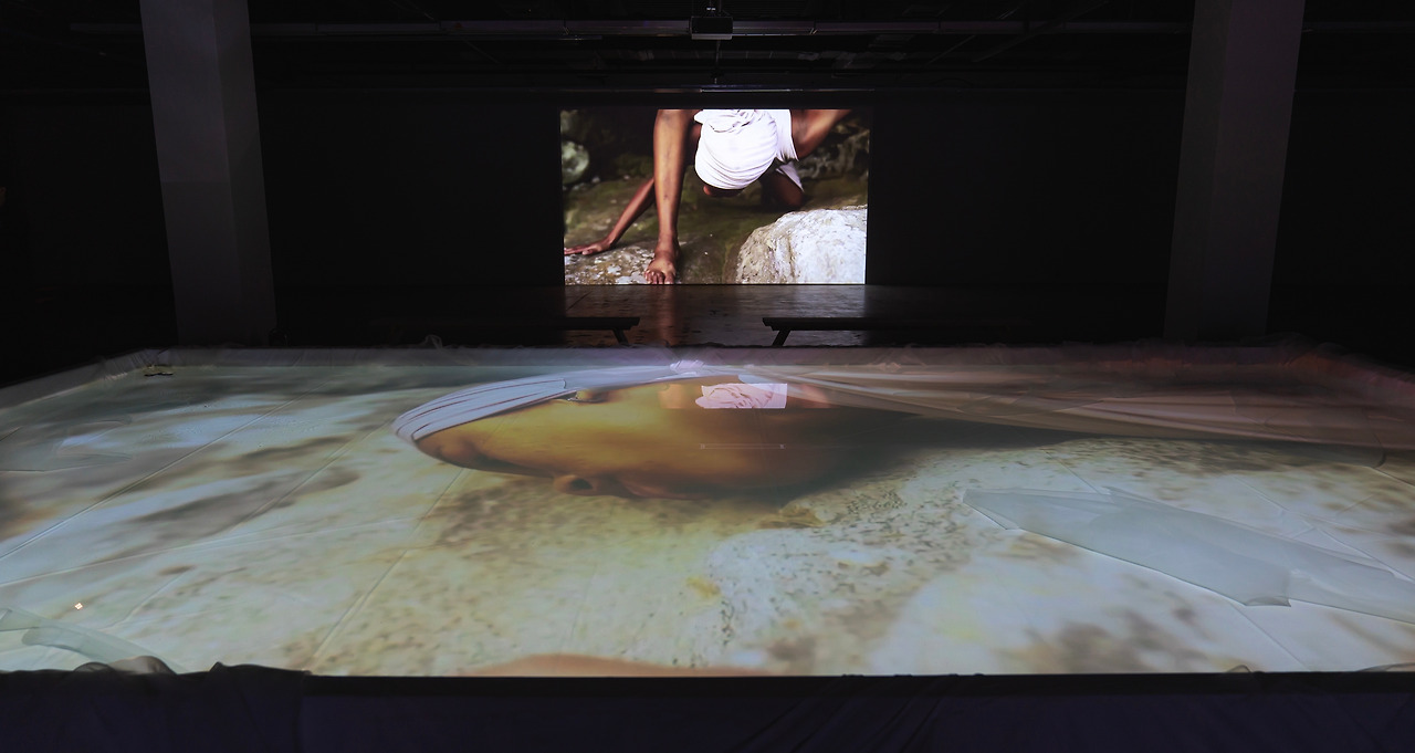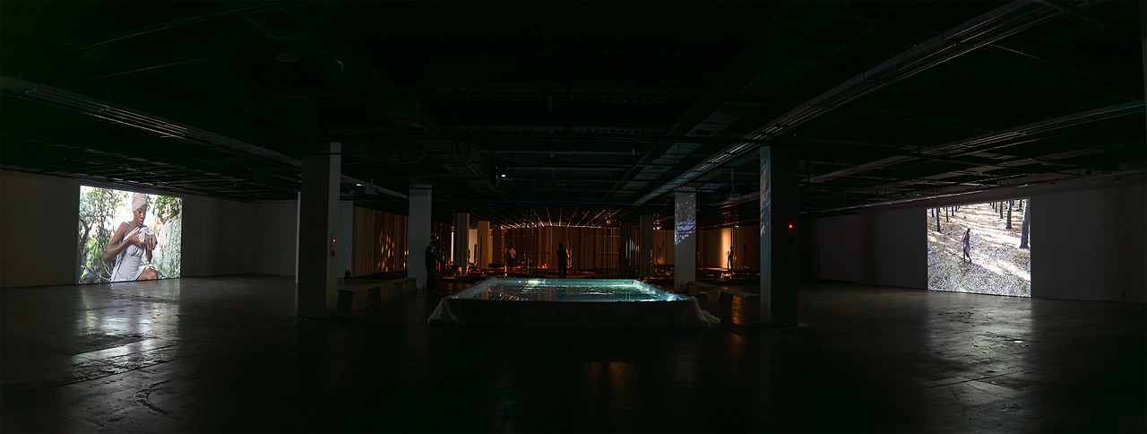 설치작품 속을 걷다 보면 어느덧 영상전시 작품이 나오는데 여기서 조금 많은 시간을 보냈던 것 같다. 양옆에서 나오는 영상과 그 가운데에 물을 받아(작은 풀장을 연상시킨다.) 천장에서 빔프로젝트를 이용해 물이 고인 면에 스크린을 쏘아 영상을 비추는 기법으로 표현된 작품이다. 그냥 별다른 이유 없이 바라보게 되었다. 나도 모르게 바라보고 느끼고 이해하려는 단계로 자연스럽게 넘어가게 되었다. 작가가 의도한 방식으로 이해하진 않았을 수 있지만 작품이 주는 어떤 힘에 이끌려서 나도 모르게 그렇게 받아들이고 있었다.