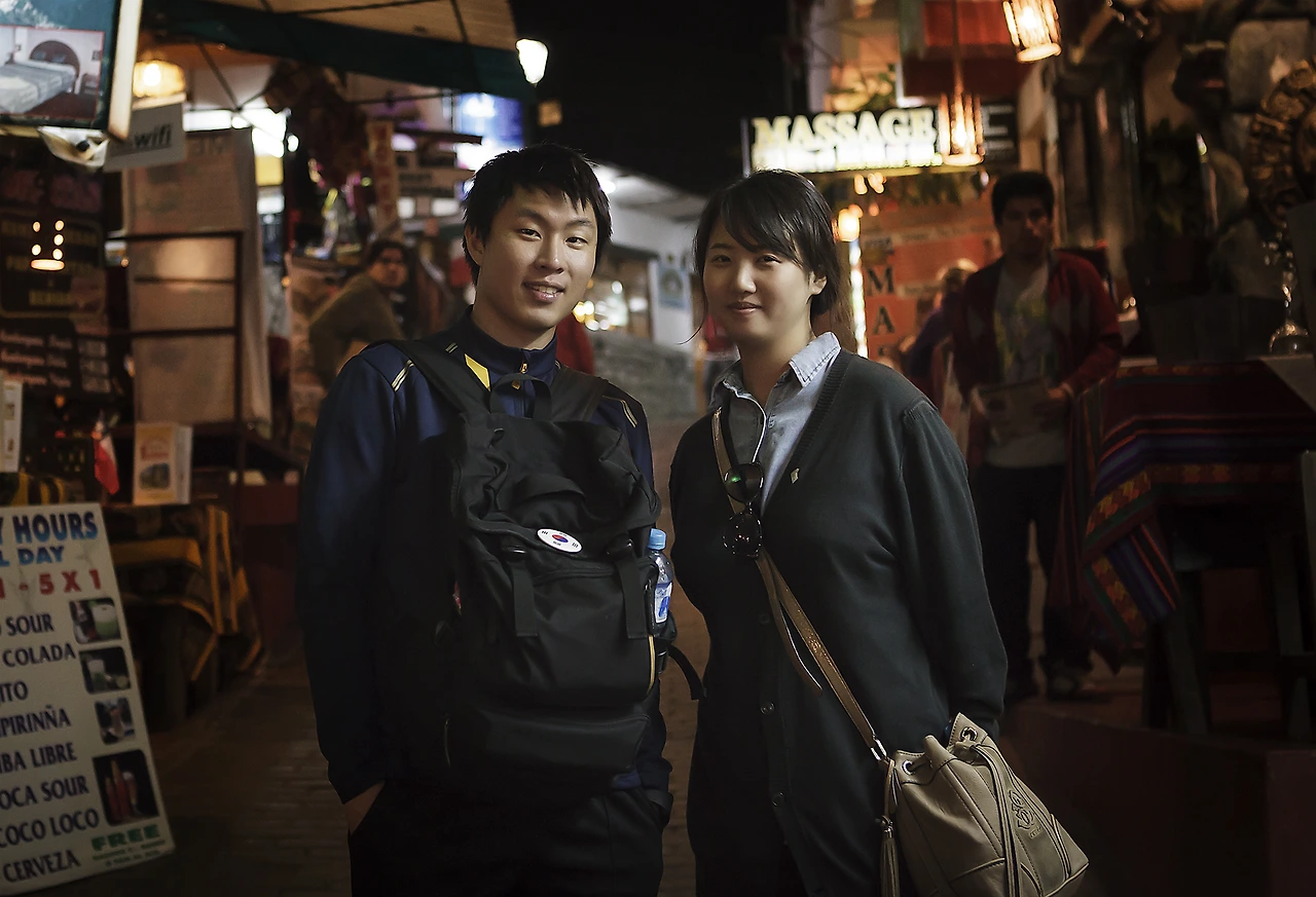 쿠스코에 도착해서 나는 바로 마추픽추가 있는 동네인 아구아스깔리엔테스로 향했고, 어둑어둑해진 밤 동네에 방을 잡고 푹 잤다. 그리고 다음날 날이 밝고 마추픽추행 버스 티켓을 끊고 드디어 꿈에 그리던 마추픽추에 도착을 하였다. 마추픽추는 와이나 픽추, 몬타나 코스가 따로 있었는데 아쉽게도 티켓을 구하지 못해 마추픽추만 구경해야 했다. 그리하여 올라간 곳이 태양의문이었는데 그 곳은 정말 황홀하리만큼 나에게 큰 감동을 주었다. 태양의 문에서 앉아 있으면 마추픽추와 와이나 픽추를 한눈에 볼 수 있었다. 그리고 기분 좋으리 만큼 불어주는 바람 또한 나를 상쾌하게 해주었다. 그렇게 혼자 즐길 만큼 즐기고 내려가는 길에 사진을 찍고 있었는데 동양인 한 사람이 내 앞에 서더니 같은 모습을 사진을 찍고 있는 게 아닌가? 처음엔 "뭐지?"라고 생각하지만 이내 가방에 붙어있던 배지를 보고 속으로 살짝 실 웃음을 지었다. 가방에는 붙어있던 배지는 태극기였던 것이다. 그리고 나는 이내 그 사람에게 "안녕하세요?"라고 인사를 하였다. 그렇게 새로운 인연이 시작되었다.