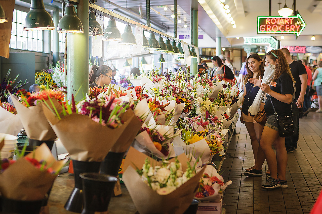 그렇게 혼자만의 생각을 멈추고 그 유명한 스타벅스를 향해 발걸음을 옮겼다. 시애틀에서 유명한 게 많겠지만은 내가 아는 건 스타벅스 1호점과 퍼블릭 마켓뿐이 없으니 우선적으로 가볼 수밖에.. 주변을 구경하며 걷다 보니 어느새 퍼블릭 마켓에 도착해 있었다. 이렇게 클 거라는 생각은 못했는데 생각 외로 정말로 컸다. 그리고 다양한 물건들과 상점들이 즐비해 있었다. 그리고 시장을 꽉 채운 사람들 어찌 보면 우리의 장날 문화와 많이 비슷한 느낌을 받았다. 그렇게 사람들을 헤치며 이곳저곳을 구경하고 밖으로 나와보니 내 눈앞에는 스타벅스 1호점이 있었다.