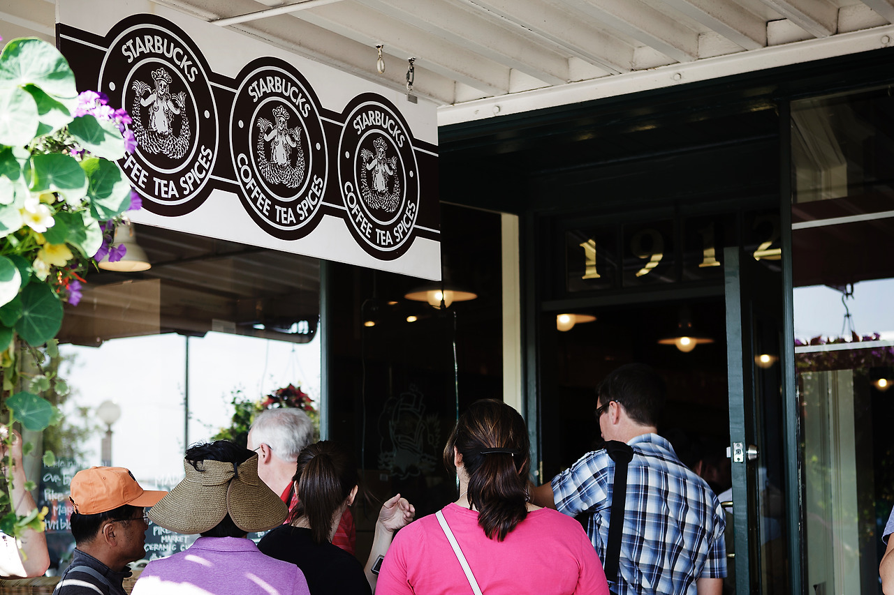 그 명성 때문인지 스타벅스 앞에는 많은 사람들이 줄을 서서 있었고 정작 커피를 주문하는 사람들보다는 기념 머그컵이나 텀블러는 사는 사람들이 더 많이 있었다. 그리고 매장도 그리 크지 않아 매장에서는 커피를 마시는 건 어렵고 보통 테이크아웃을 해가는 사람들이 대부분이었다. 사진은 많이 찍지 않고 상징적인 거 한 두장만 찍고 말았다. 그리고 나도 어느샌가 그 줄에 한 사람으로 서있었다.