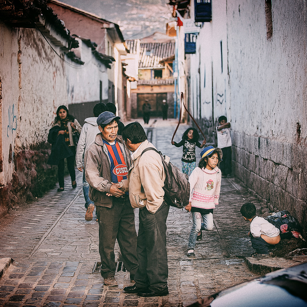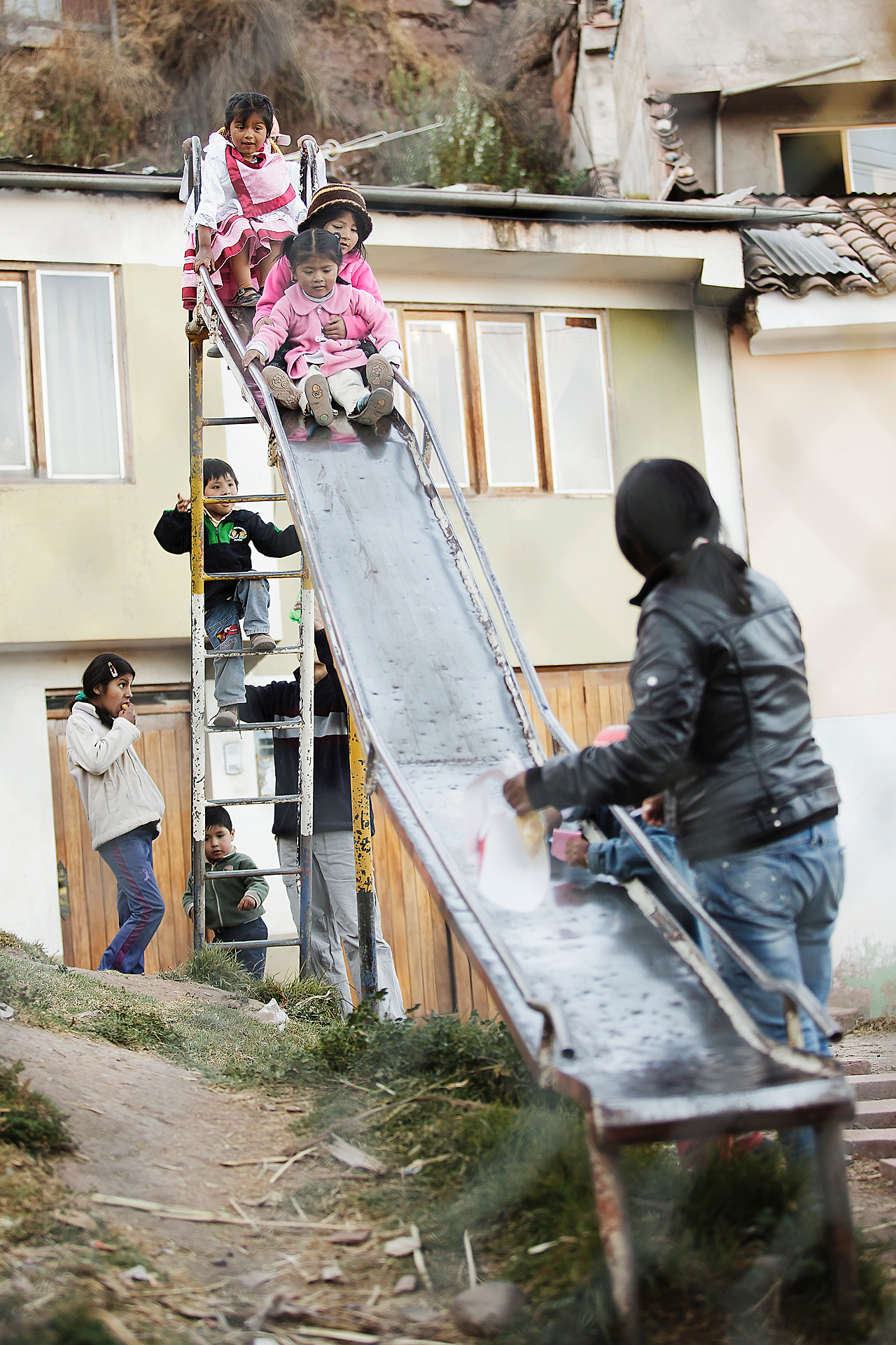 아직 여정이 남아있기에 발걸음을 옮겼다. 점점 마을의 가장 높은 곳이 눈에 들어오기 시작했을 때쯤 골목에서 아이들이 연을 날리고 있었다. 그 모습을 보며 잠시 나도 생각이 스쳐 지나갔는데, 내 어린 시절 학교 운동장에서 연을 들고 신나게 뛰었던 나의 모습과 너무 닮아 있던 아이들 모습에 절로 미소를 뗬다. 그리고 얼마 지나지 않아 부모님들의 모습이 보였고 순간 나는 사진을 찍고 싶다는 생각이 들어 같이 온 친구 중에 그나마 스페인어를 잘하는 친구에서 부탁해서 사진 한 장을 남겼다. 비록 나는 없지만 나를 보던 그 들의 모습이 지금에도 잊히지 않는다.