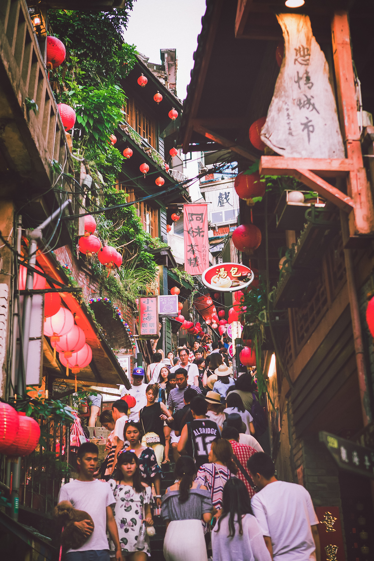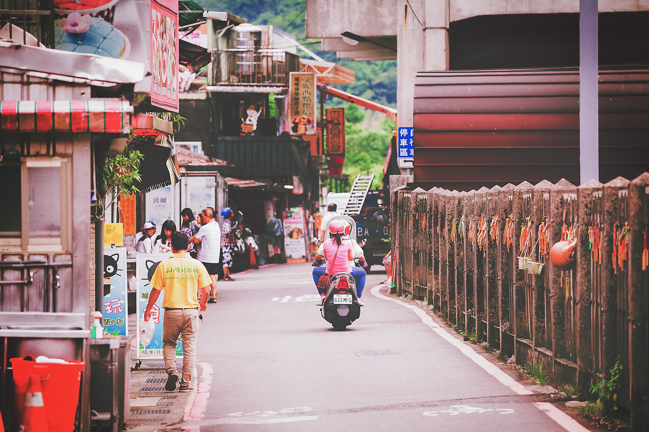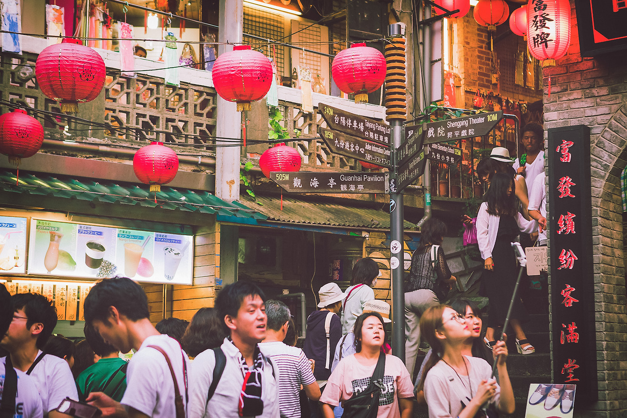 일본에 유명한 애니메이션의 배경이 된 지우펀은 대만에 오면 꼭 한번 오고자 했던 곳이다. 그리고 제일 기대도 많이 했던 장소이기도 하다. 센과 치히로에 나온 홍등의 강렬한 이미지는 내 머릿속에 깊게 박혀있었다. 마지막 코스로 이곳에 오니 해가 벌써 지고 밤이 내려앉으려 한다. 지우펀의 홍등은 하나둘씩 불을 밝히고 있었고 골목골목은 사람들로 붐볐다. 산기슭을 따라 마을이 형성되어있다. 마치 달동네처럼 골목골목이 미로처럼 연결되어 있고 가파른 오르막과 내리막이 있다. 나의 얼굴을 홍등에 반사되어 붉게 물들었다. 골목에는 기념품과 음식점 등이 즐비했으며 관광객들이 서로 어깨가 닿을 만큼 가까웠다.