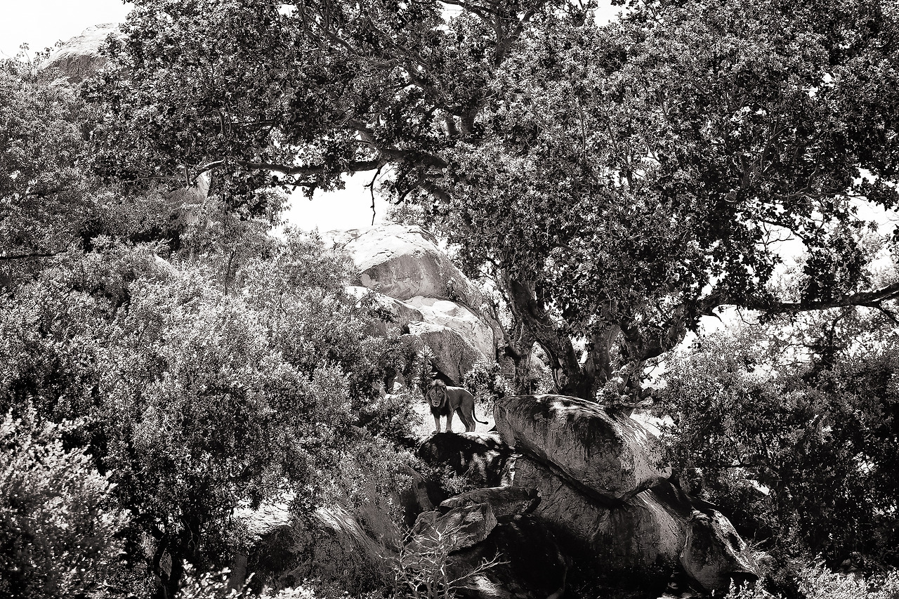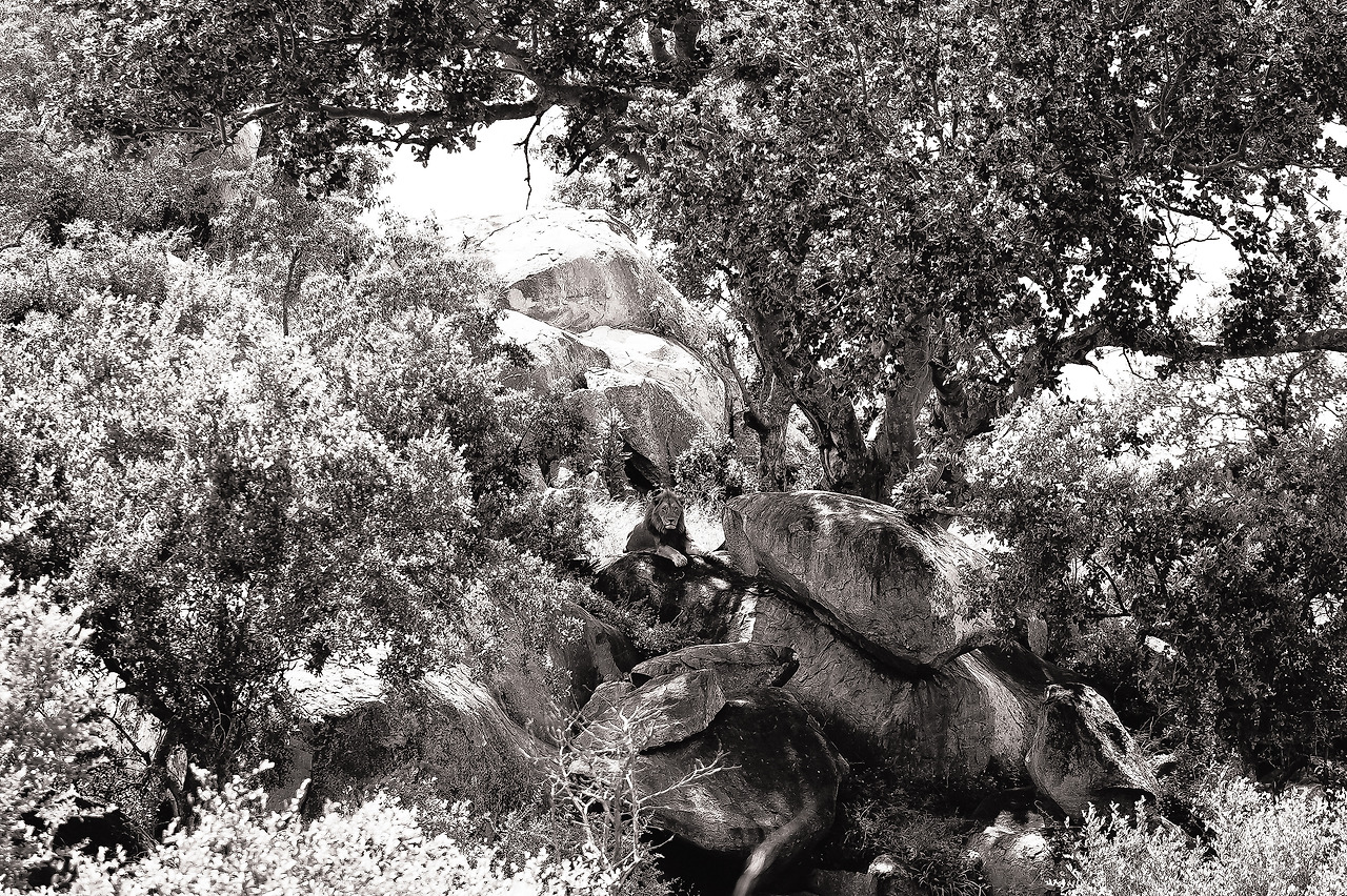 뜨거운 햇살을 피해 커다란 나무그늘 밑에 한 마리의 수사자가 그렇게 쉼을 청하고 있다. 거리상으로도 결코 가깝지 않은 거리다. 그 아래에 쉬고 있는 사자의 무게감은 감히 이루 말할 수 없을 정도로 다가왔다.