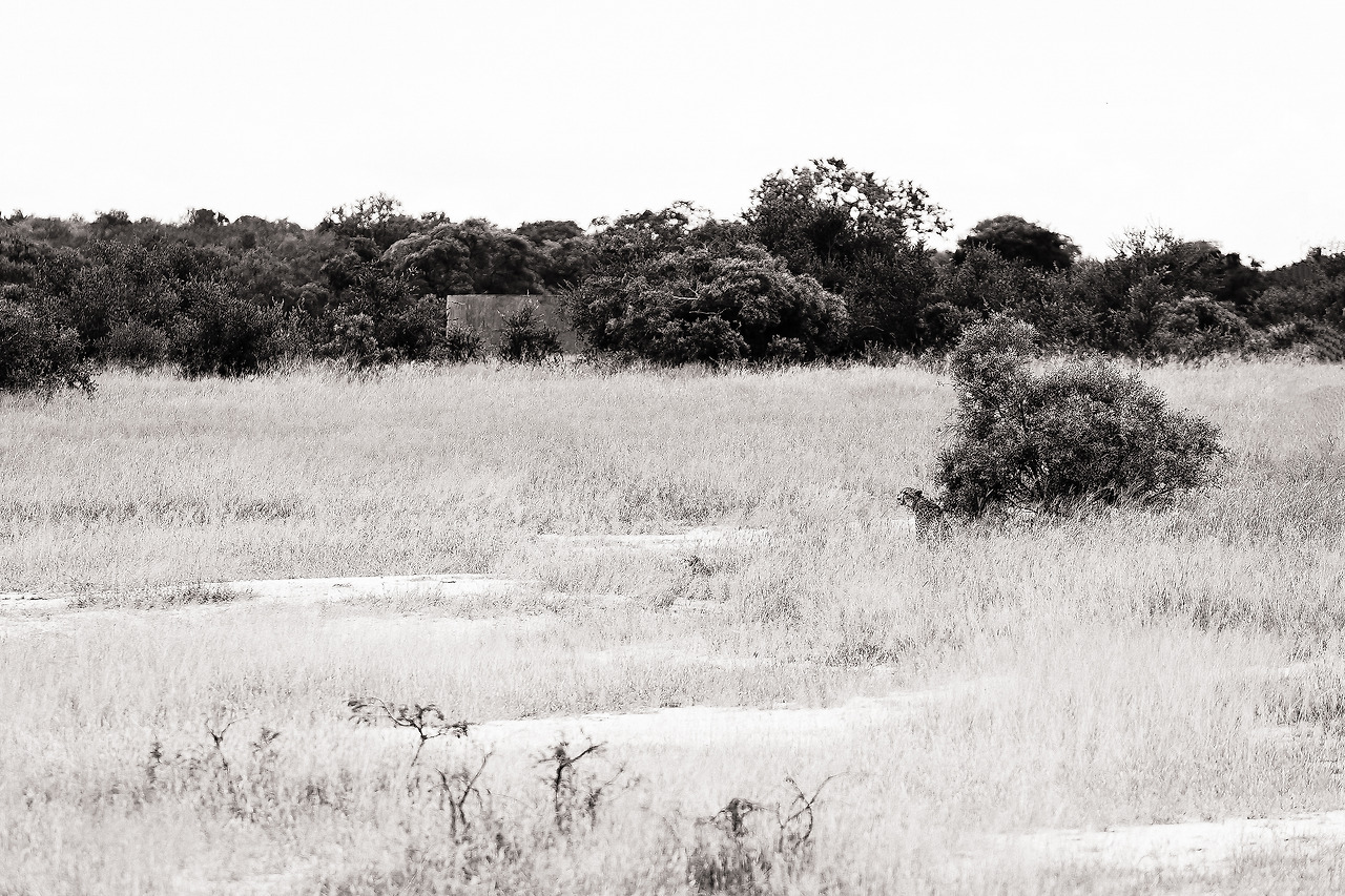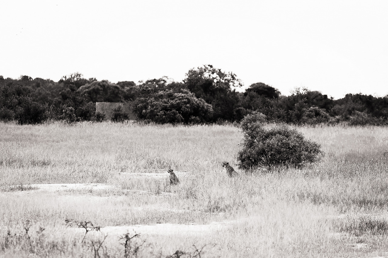 그렇게 한낮의 태양을 피해 나무 위에 있던 표범을 뒤로하고 다른 길로 이동하기로 한다. 그동안 못 봤던 동물을 볼 수 있을까? 하는 설렘과 표범까지 봤으니 오늘은 운이 좋아 다른 동물도 볼 수 있을 거 같았다. 그 자신감이 통했는지 넓은 들판 곳을 천천히 지날 때쯤 운전하던 친구가 "저기 치타다!"라고 알려주었다. 이번에도 한참이나 찾았는데 진짜 들판 위에 나 있는 풀들 속에 치타 2마리가 앉아있었다. 새끼와 어미였는지 앞에 한 마리와 뒤에 한 마리가 나란히 어디를 보고 있는지 유심히 한곳을 보고 있었다.
