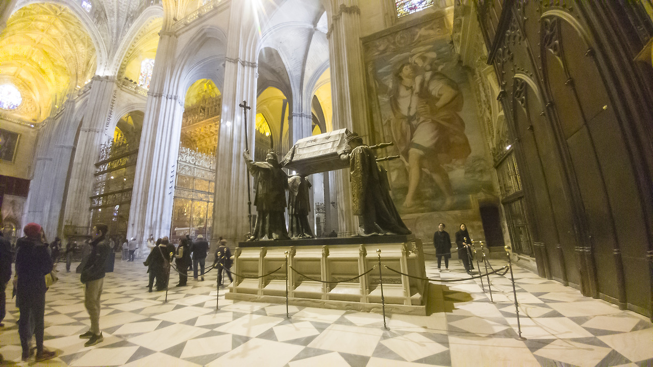 사실 스페인에 와서 가장 많이 본 관광지 중 하나가 성당이기에 개인적으로 크게 기대감보다는 그래도 한 번쯤 봐야 하지 않을까? 라는 생각에서 다녀오게 된 곳이다. 성당 내부에 들어선 순간 정말 넓다는 생각을 제일 먼저 한 거 같다. 그리고 바로 보이는 4명의 사람이 묘를 들고 있는 모습이 인상 깊었다. 가까이가 자세히 들여다보니 4명의 사람은 왕이었으며, 왕이 들고 있던 묘가 바로 콜럼버스의 묘였다. 근데 특이한 점이 하나 있었는데 앞의 두 왕은 얼굴을 꼿꼿이 들고 있지만, 뒤의 두 왕은 고개를 푹 숙이고 있는 것이었다. 알고 보니 앞의 두 왕은 콜럼버스의 항해를 지지한 왕이었고 뒤에 두 왕은 반대했던 왕이었다. 나는 우두커니 콜럼버스의 묘앞에 서서 생각에 잠겼다.