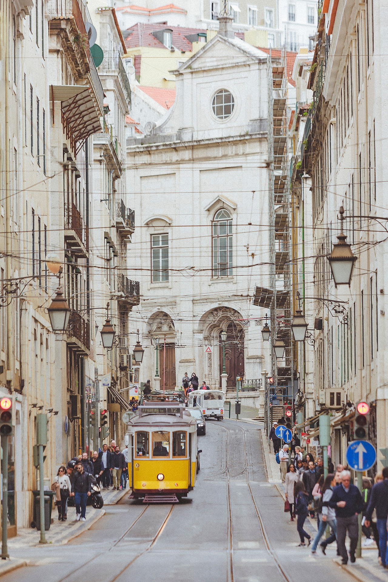광장으로 향하는 길 중간중간에 골목들이 나오는데 이곳은 트램도 함께 다닌다. 그냥 걷기에 힘든 오르막 구간들이 많아 이렇게 트램과 버스가 함께 운영된다. 그리고 리스본엔 유명한 트램이 있는데 그 트램이 가는 코스에서 바라보는 리스본 풍경과 골목 풍경이 이뻐 관광객들 사이에 인기가 좋다고 알려져 있다. 어느덧 광장에 다다랐나 보다 사람들의 북적이는 소리가 점점 가까워지고 있다.