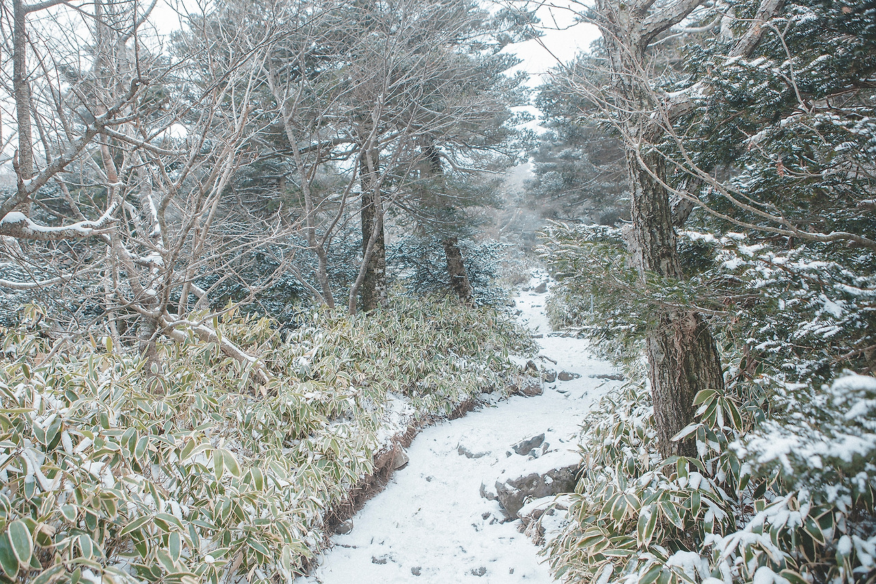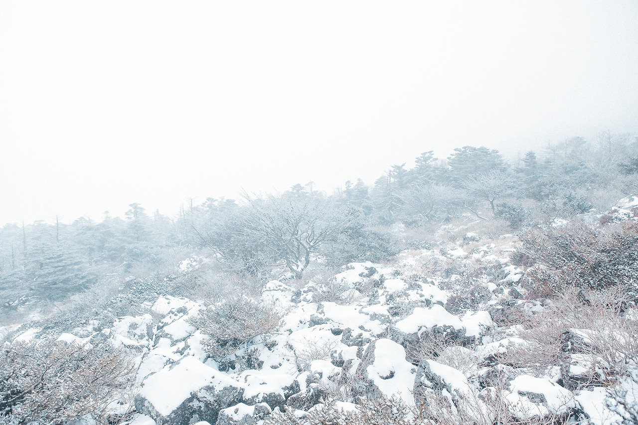 하늘에선 눈발이 날리고 숲길 사이로는 눈꽃들이 하나씩 피어오르고 있었다. 겨울 한라산은 나에게 항상 설렘을 안겨주었다. 엘사의 마음이 된 듯이 겨울 정원에 들어온 느낌이랄까? 시리도록 차가운 바람을 맞으면 정신도 맑아지는 느낌이다. 그렇게 걷고 또 걸었다. 산에 오르는 것은 힘든 시간을 겹겹이 견뎌내는 일처럼 점점 발걸음을 무겁게 하지만 마음은 그와 반대로 점점 가벼워진다. 그래서 나는 산에 오른다. 바다도 좋지만, 개인적으로 산을 더 좋아하는 이유이기도 하다. 무거운 생각을 짐을 벗어 버리고 싶어 먼 길을 거침없이 걸어가는 순례자들처럼 말이다.