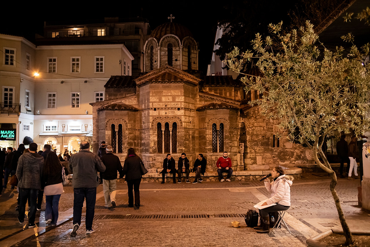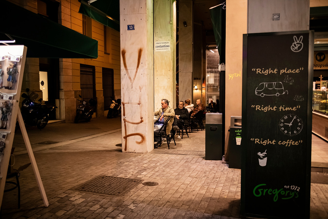 잠깐 나도 모르게 잠들었나 보다. 꿀 같은 잠에서 깨고 보니 하늘에는 다시 어둠이 내려앉았다. 순간 고민의 고민을 거듭했다. 내일 오후 비행기로 바로 산토리니에 가야 하기에 오늘은 아테네에서의 첫날 밤이자 동시에 마지막 밤이었다. 이대로 그냥 쉴 것인가? 아니면 잠깐이라도 밤거리를 산책할 것인가? 짧은 시간 동안 내면에서는 나와의 사투가 벌어졌다. 결국 내 발걸음이 이긴 것 같다. 머릿속은 고민 중이었지만 내 발은 이미 문밖을 향해 움직이고 있었기에 이미 결론 나온 시시한 고민을 순간 진지하게 했던 거다. 그렇게 처음이자 마지막인 아테네 밤거리를 걷게 되었다.