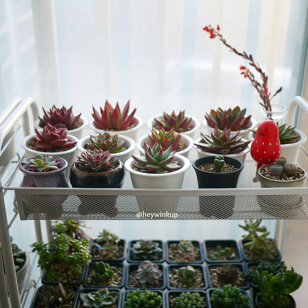 주인 맘도 모르고 여기저기 손을 들어 꽃대를 자랑하는 다육이들. 왠지 미안하다.