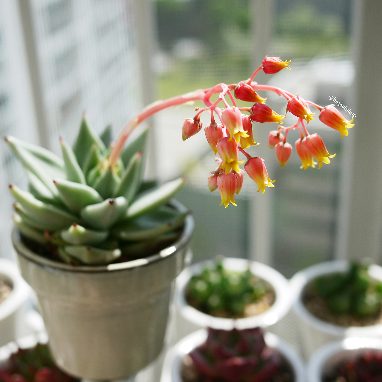 그 후로도 한동안 다닥다닥 붙은 얼굴에서 매일 한 두 송이씩 꽃이 피어났다. 이쯤 되면 이미 사진첩은 꽃 사진으로 가득해지고, 대화 도중 조금의 빌미만 생기면 간직해둔 꽃 사진을 꺼내어 자랑하기 일쑤였다. 꽃이 필 때마다 자랑하시던 엄마 마음이 이제야 이해가 가는 순간이다. 해준 것도 없는데 이렇게 예쁜 꽃을 피운 다육이가 대견하고 자랑스러워지는 계절.