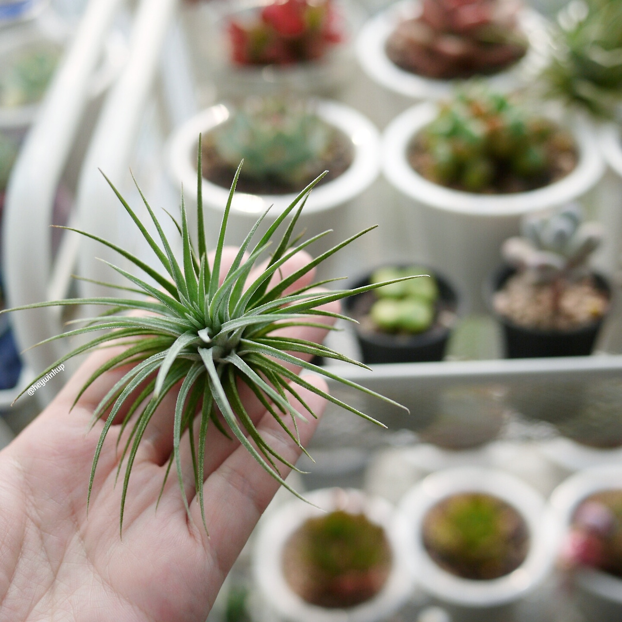 다육이에 수많은 종류가 있듯이 틸란드시아에도 약 500여 종이 존재하며, 국내에서도 수십여 종이 유통되고 있다. 다육식물과는 완전히 다른, 새로운 형태의 식물을 경험하는 건 역시나 떨리는 일인 것이다. 여름에는 새 식물 식구를 들이지 않겠다는 신념과 사계절 새 식구를 들이고 싶은 욕망 사이에서 갈등하던 중, 틸란드시아는 '굉장히 키우기 쉽다'는 이야기를 듣고 생김새도 키우기도 가격도 가장 무난한 이오난사라는 이름의 틸란드시아를 첫 번째 식구로 맞이해 보았다.