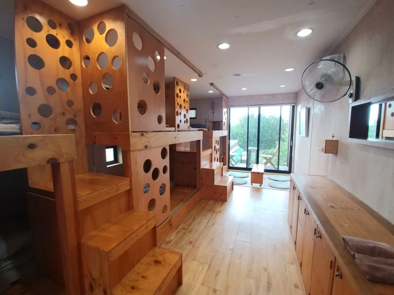 우리는 손님들을 제재하는 게 없다. 불을 켜놓고 계속 놀아도 상관없다. 10시면 다 불 끄고 올라가서 자는데 우리는 그렇지 않고 맘대로 써도 되고, 주방도 조리도 할 수 있게끔 한다.